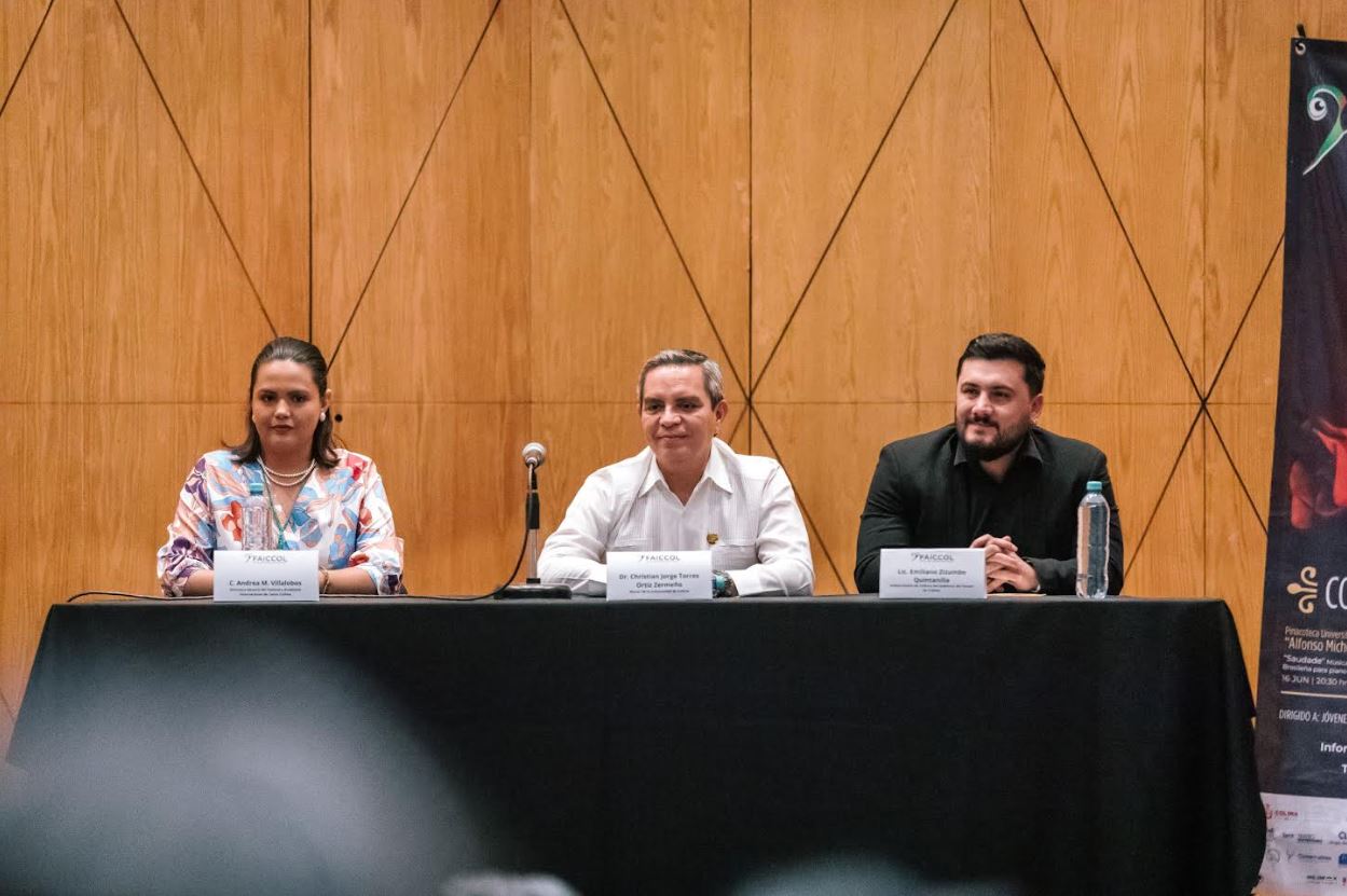 Durante su mensaje inaugural, el rector Christian Torres Ortiz Zermeño destacó que la Universidad de Colima no sólo forma profesionistas, sino también sensibilidad, talento y ciudadanía. “Festivales como FAICCOL son una extensión natural de nuestra vocación cultural. Honra a esta institución que surja como iniciativa de una de nuestras estudiantes, Andrea Montserrat Villalobos, respaldada por un equipo académico sólido liderado por Mariana del Rocío Corona Delgado y la Dirección General de Difusión Cultural”.