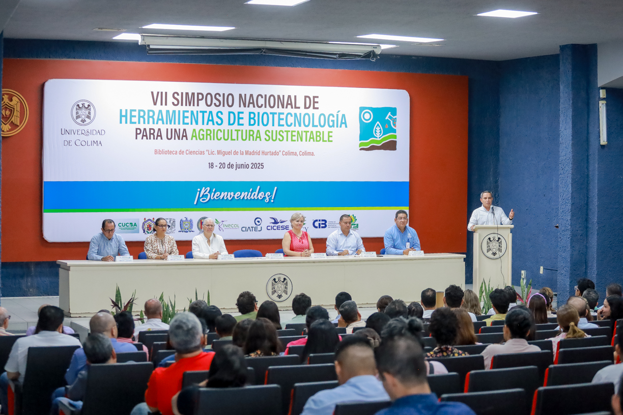 La mañana de este miércoles, Christian Jorge Torres Ortiz Zermeño, rector de la Universidad de Colima, inauguró la séptima edición del Simposio Nacional: Herramientas de Biotecnología para una Agricultura Sustentable, organizado por la Red Nacional de Cuerpos Académicos de Biotecnología y Sustentabilidad.