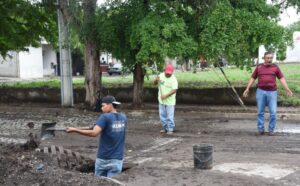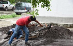 Derivado del reporte recibido por vecinos de la colonia Bosques del Sur, en el que se señalaba el colapso de un colector pluvial y la obstrucción de las alcantarillas por acumulación de basura, causando estancamiento de agua, malos olores y proliferación de mosquitos, la Dirección de Mantenimiento del Ayuntamiento de Colima desplegó de inmediato una brigada de atención.