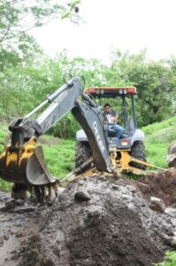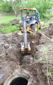 • Rehabilitación del colector pluvial: Con maquinaria pesada, se intervino el tramo colapsado, procediendo a la extracción de escombros y al colocamiento de tubería.