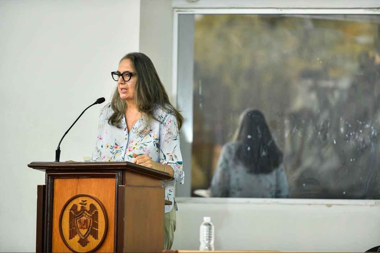 Elvia González del Pliego Dorantes, consultora independiente en estudios de género y cultura de paz, impartió la conferencia inaugural del 16 Coloquio Internacional “Género y cultura de paz: Coordenadas para la transformación social”, en el Auditorio de la Facultad de Ciencias Políticas y Sociales de la Universidad de Colima (UdeC).