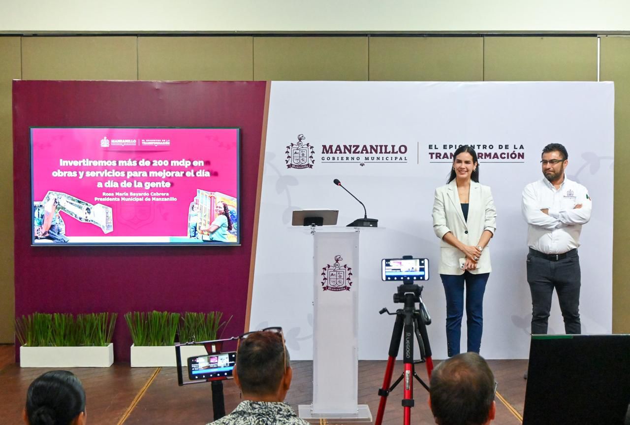 La presidenta municipal de Manzanillo, Rosa María Bayardo Cabrera, informó que se invertirán más de 200 millones de pesos en obras, acciones y proyectos con sentido social que transformen el municipio y mejoren la calidad de vida de las y los manzanillenses.