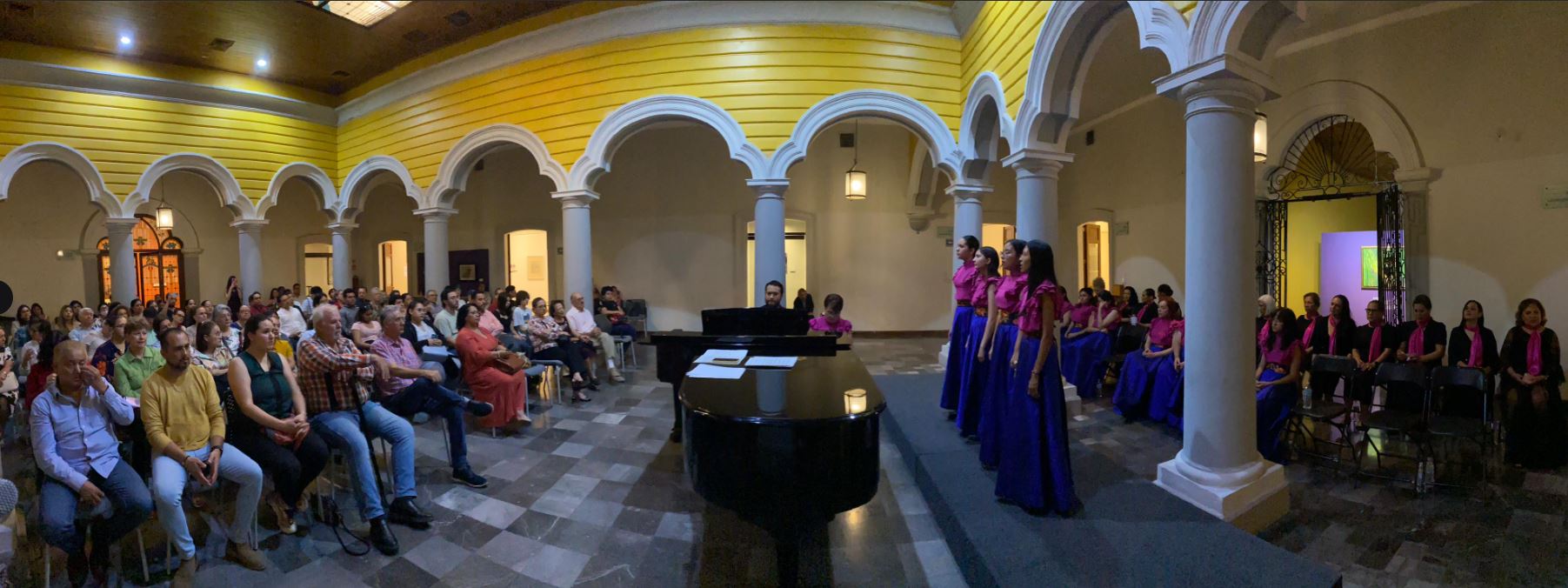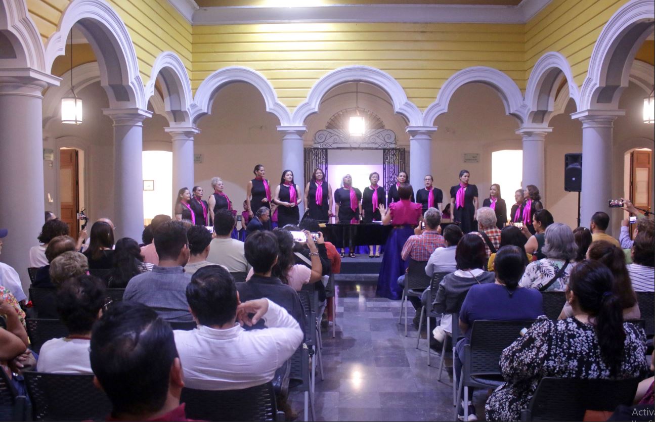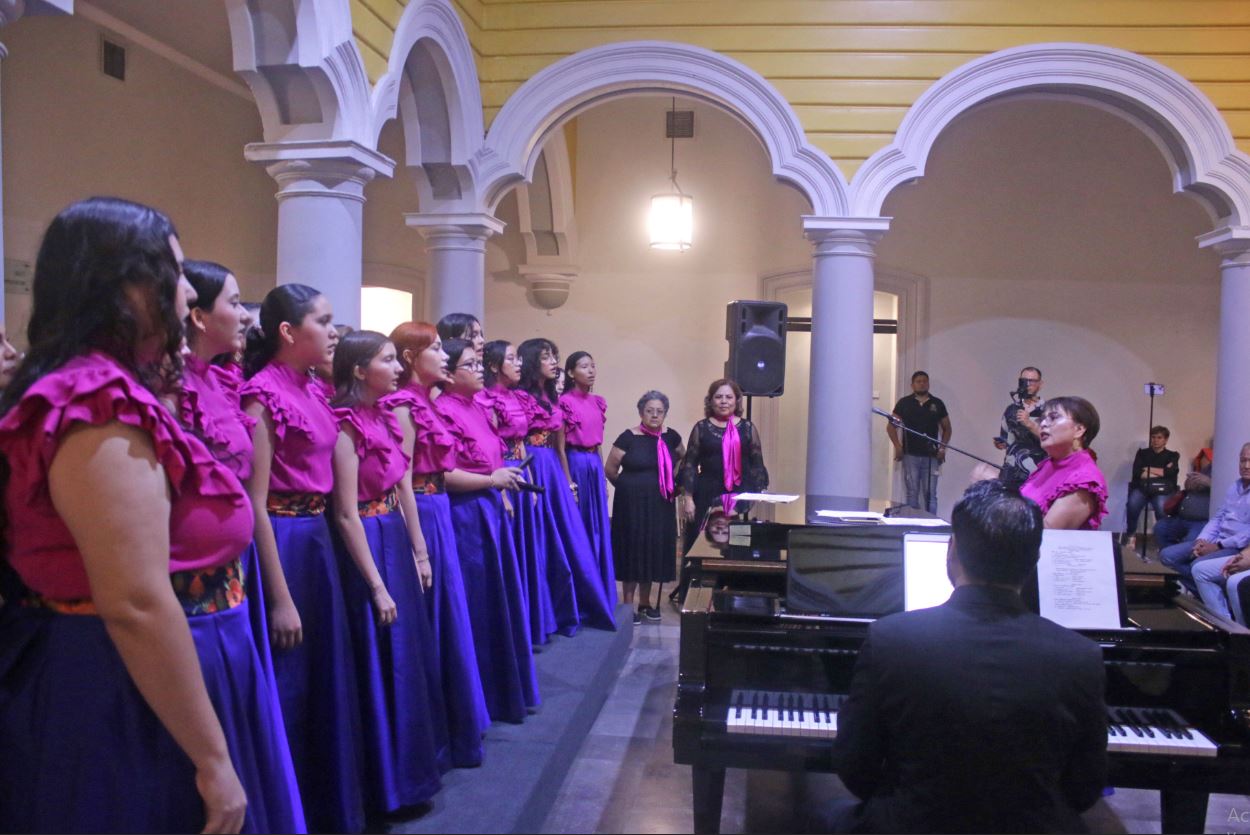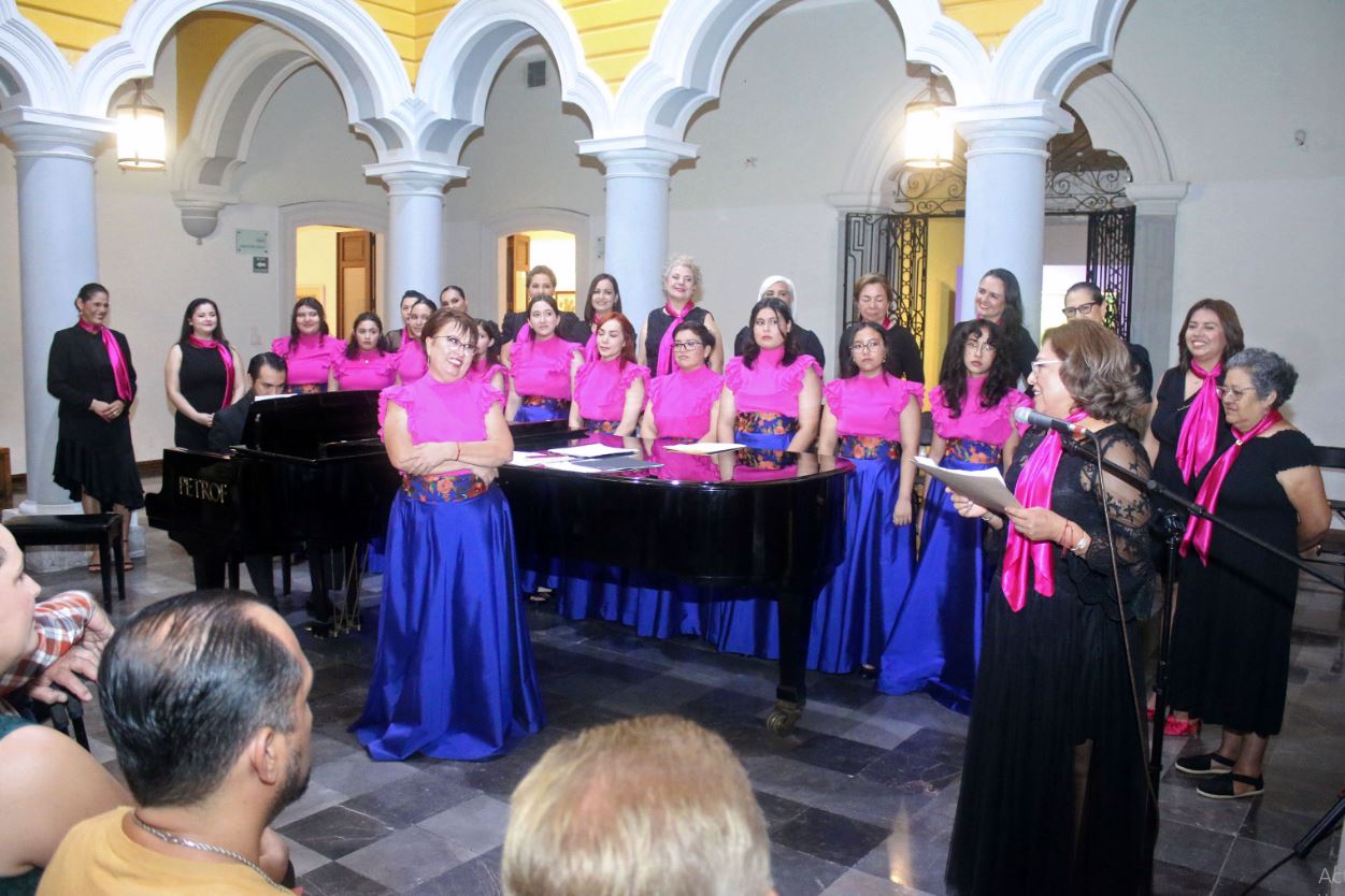 Con el concierto titulado “Letras de amor”, la agrupación Coral Femenina de la Universidad de Colima festejó, bajo la dirección de la maestra Agustina Murguía Nieves, sus quince años de trayectoria artística. Esto en la Pinacoteca Universitaria, en un encuentro que, además, contó con la presentación oficial del grupo Coral ACU, conformado por integrantes de la Asociación Colimense de Universitarias, así como de los pianistas invitados, Mario Alberto García y Jorge Hernández.
