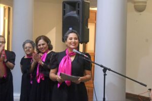 En su turno, la integrante de Coral ACU, Azucena Evangelista agradeció la invitación a participar en el festejo por los 15 años de Coral Femenina, “una agrupación generosa que ha formado a decenas de niñas, adolescentes y mujeres en la disciplina coral”.