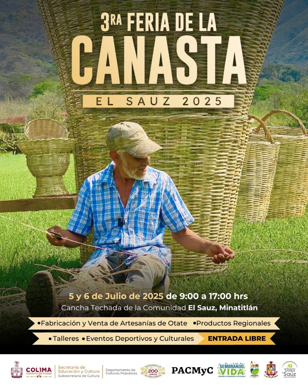 La Subsecretaría de Cultura del Gobierno del Estado de Colima anunció la realización de la tercera edición de la ‘Feria de la Canasta’ el sábado 5 y domingo 6 de julio, una iniciativa de la comunidad rural de El Sauz, impulsada por el Ayuntamiento de Minatitlán, en coordinación con la dependencia estatal y el programa federal Sembrando Vida de la Secretaría de Bienestar del Gobierno de México.