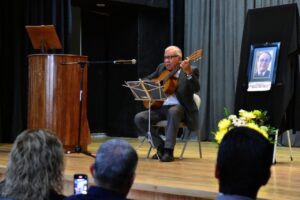 Durante el homenaje, el regidor Gustavo López Sandoval dio lectura a la semblanza de vida de un hombre cuya vida fue un acto de entrega, sensibilidad y pasión por el arte, “Guillermo Lares Lazarit, no solo vivió, interpretó la vida con una intensidad que pocos conocen”.