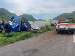 Servicios de emergencia ya se encuentran en el lugar del percance, donde brindaron atención al conductor y al copiloto de la pesada unidad quienes resultaron lesionados; no se registran más personas lesionadas ni otros vehículos involucrados.