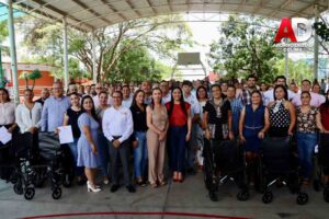 Villa de Álvarez, Col.- La Gobernadora Indira Vizcaíno y la Presidenta Tey Gutiérrez pusieron en marcha el programa La Villa Solidaria, mediante el cual el gobierno de Villa de Álvarez entregará sillas de ruedas en escuelas de educación básica del municipio para atender emergencias de niñas, niños y docentes que pudieran requerir asistencia para su movilidad al interior de los planteles.