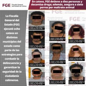 La Fiscalía General del Estado (FGE) ejecutó ocho cateos en distintos municipios del estado como parte de las estrategias para combatir la delincuencia y garantizar la seguridad de la ciudadanía colimense.