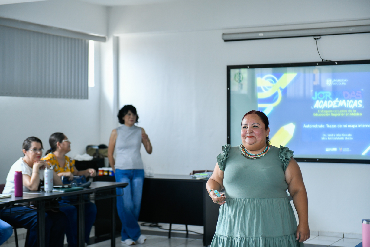 Como parte de las Jornadas Académicas 2025 de la Universidad de Colima, 35 docentes de nivel medio superior y superior participan durante dos días en el curso-taller “Autorretrato: trazos de mi mapa interno”, impartido por Patricia Liliana Murillo Chacón, colaboradora de la Dirección General para el Desarrollo Integral, y Sandra Lucía Uribe Alvarado, encargada del área de Servicios Educativos de la Pinacoteca Universitaria.