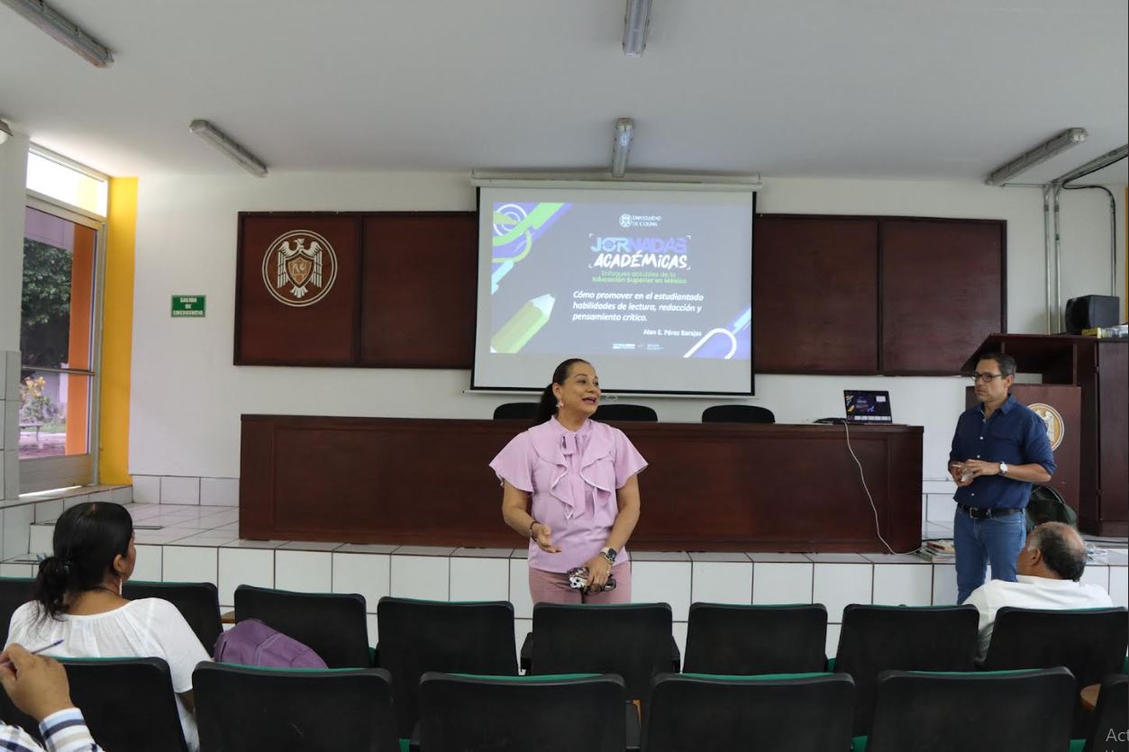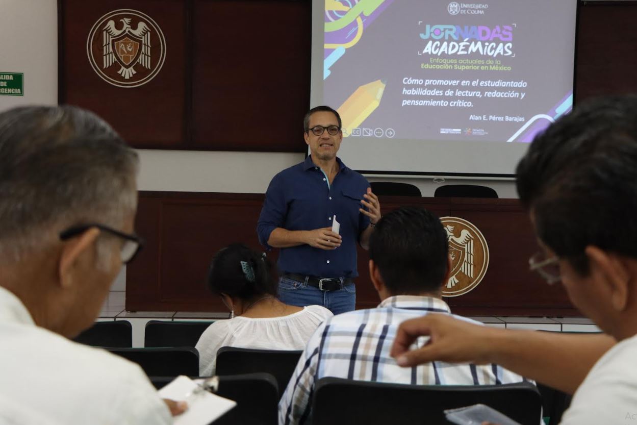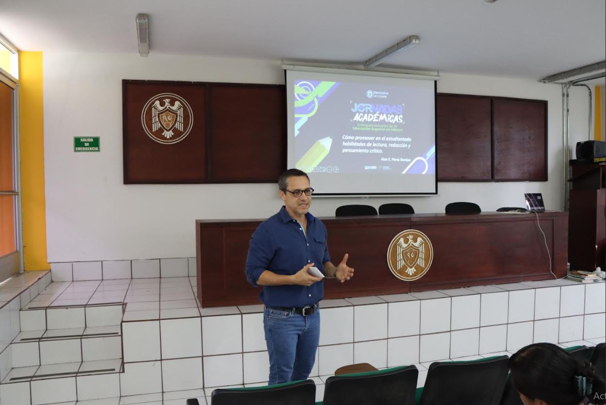 Como parte de las actividades de las Jornadas Académicas 2025, la Universidad de Colima, a través de su Delegación en Tecomán, realizó el taller: “Cómo promover en el estudiantado habilidades de lectura, redacción y pensamiento crítico”, dirigido a docentes de nivel superior e impartido por el Mtro. Alan Emmanuel Pérez Barajas, lingüista y especialista en didáctica del lenguaje.