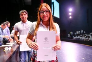 Añadió que su generación no solo cursó el bachillerato, sino que lo desafió y lo transformó: “Aprendimos el valor de la amistad, del trabajo en equipo y de la resiliencia. Eso también es motivo de orgullo”.