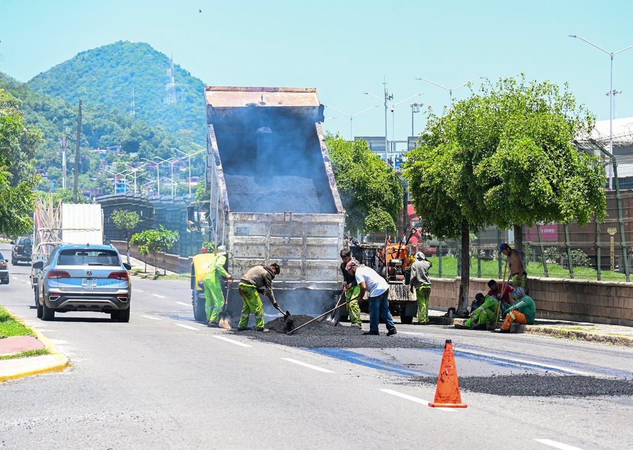 Como resultado, tan solo durante las últimas tres semanas, se han intervenido más de 500 metros cuadrados de superficie dañada, priorizando vialidades de alto flujo como el boulevard Miguel de la Madrid, avenida Manzanillo, avenida Elías Zamora, libramiento Miramar-Peñitas y libramiento El Naranjo, además de diversas calles en Valle de las Garzas, Santiago y zona Centro.
