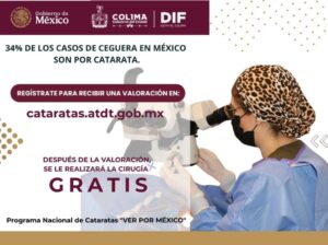 Como parte del trabajo coordinado entre el Gobierno del Estado de Colima, a través del DIF Estatal, y el Gobierno de México, se encuentra abierta la convocatoria para formar parte de la Estrategia Nacional de Cirugía de Catarata ‘Ver por México’, que ofrece valoraciones visuales y cirugías gratuitas para quienes lo requieran.