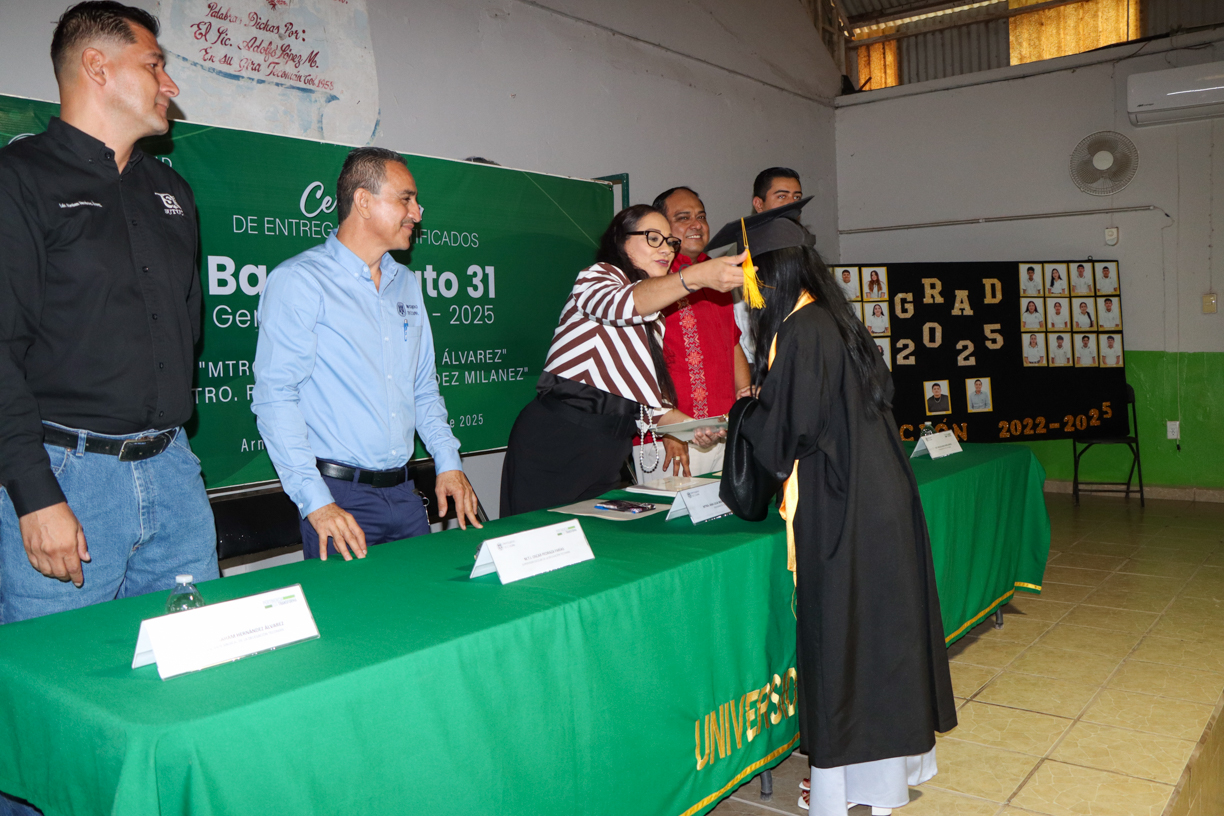 En la comunidad de Cofradía de Juárez, el director del Bachillerato 31, Dr. José Guadalupe Vizcarra de la Rosa, destacó el doble significado de esta generación en su propia vida: “Ustedes son una generación muy especial para mí. Coincidimos en mi llegada como director y hoy también me toca entregar certificados por última vez. Me llena de alegría verlos culminar esta etapa”.