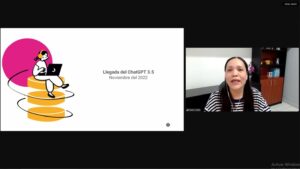 Sobre la llegada de la inteligencia artificial, como ChatGPT, dijo que ha sido un proceso disruptivo que ha puesto a repensar a las y los docentes su forma de enseñanza y a preguntarse si el aprendizaje de sus estudiantes es efectivo, pues ese chat “genera un sinfín de documentos que no garantizan el aprendizaje”.
