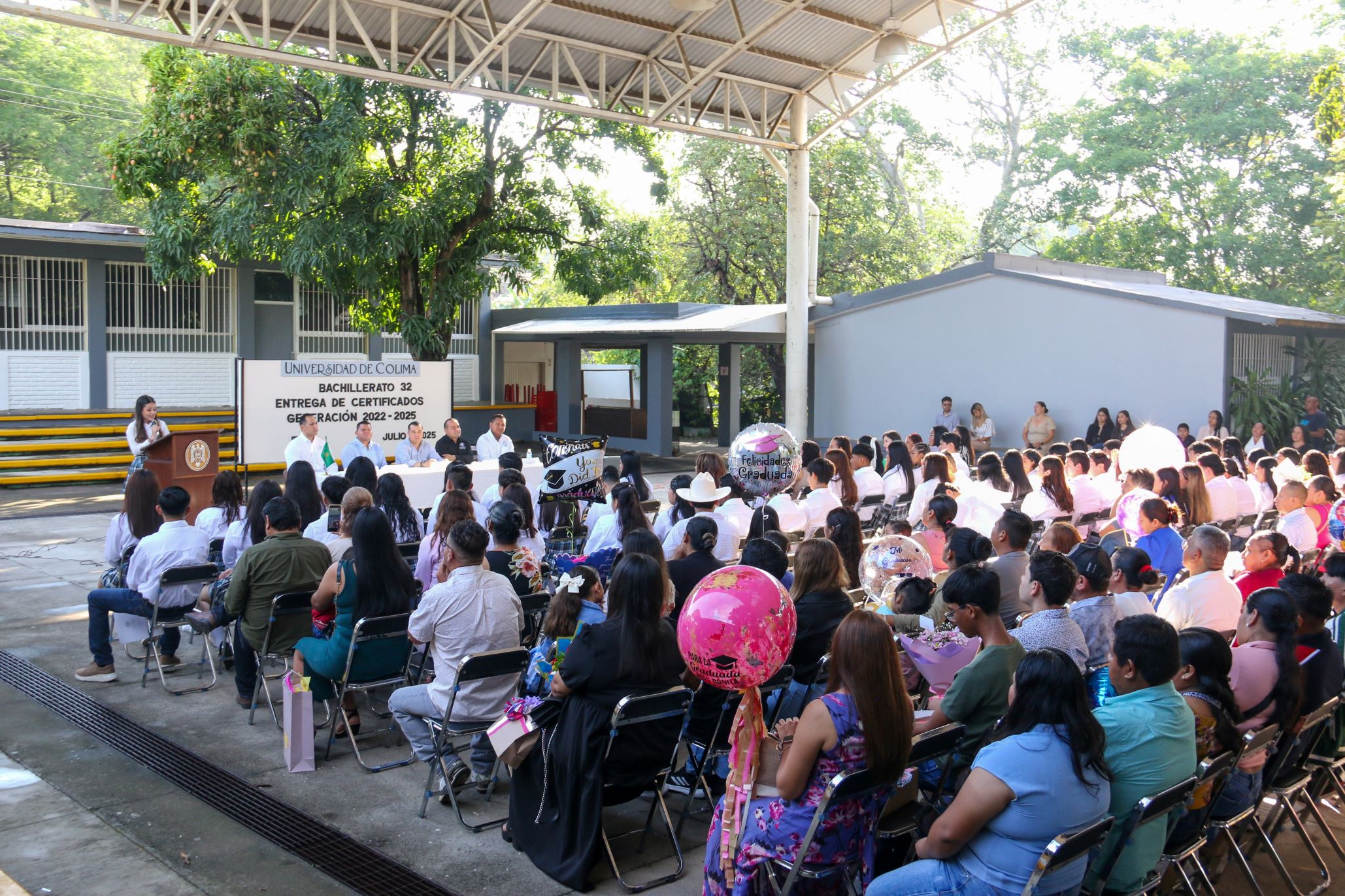 En un emotivo acto académico, el Bachillerato 32 de la Universidad de Colima, ubicado en la comunidad de Suchitlán, entregó certificados de estudios a las y los estudiantes que culminaron su formación en el Nivel Medio Superior, generación 2022–2025, en una ceremonia cargada de reflexiones, agradecimientos y compromisos con el entorno y la educación.