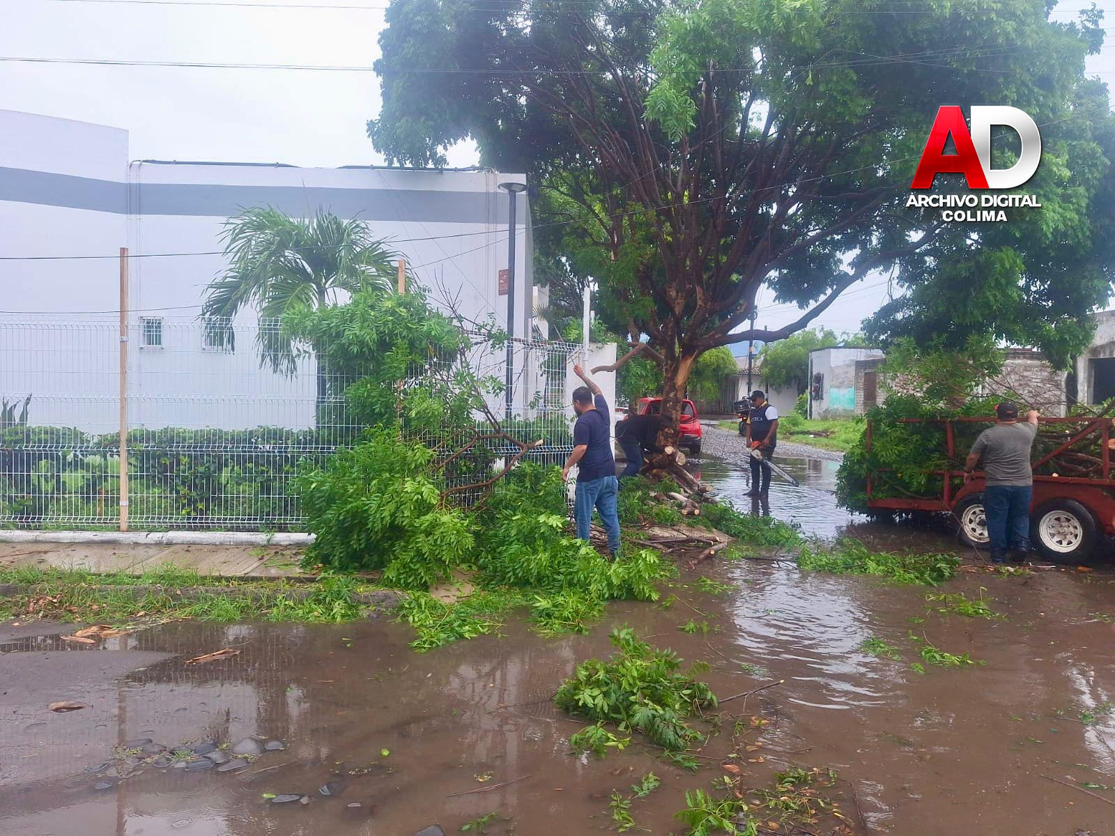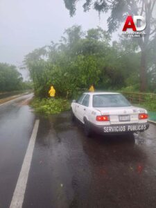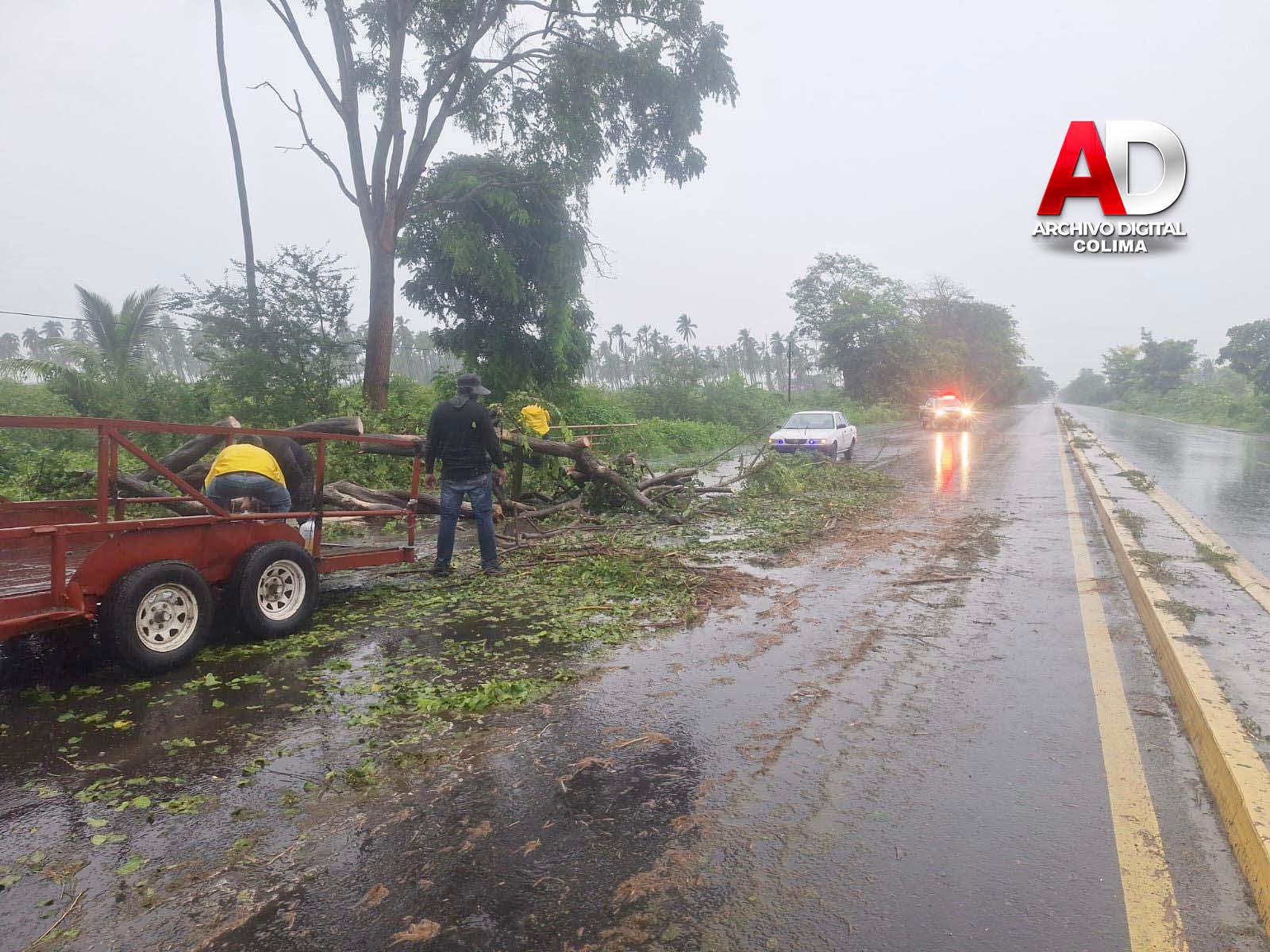 Las cuadrillas municipales trabajaron de manera oportuna en distintos puntos prioritarios: la carretera Tecomán a Cofradía de Morelos, la carretera hacia Playa Tecuanillo y en colonias de la cabecera municipal, donde las lluvias y rachas de viento provocaron la caída de vegetación que representaba un riesgo tanto para peatones como para automovilistas.
