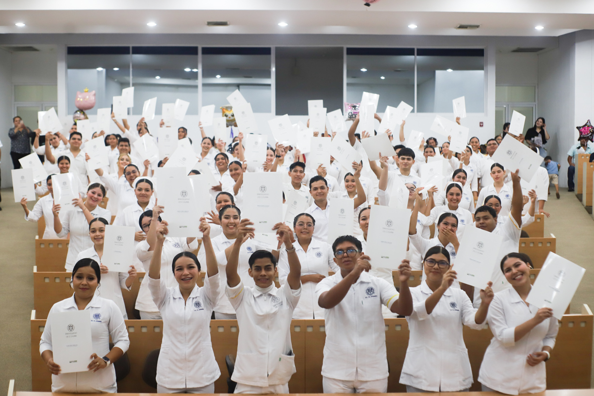 En una emotiva ceremonia realizada en el Centro de Tecnología Educativa del campus El Naranjo de Manzanillo, la Escuela Técnica de Enfermería de la Universidad de Colima entregó certificados a las y los estudiantes de la generación 2021–2025, quienes celebraron el cierre de una etapa formativa clave, acompañados de sus familias, amistades y docentes.