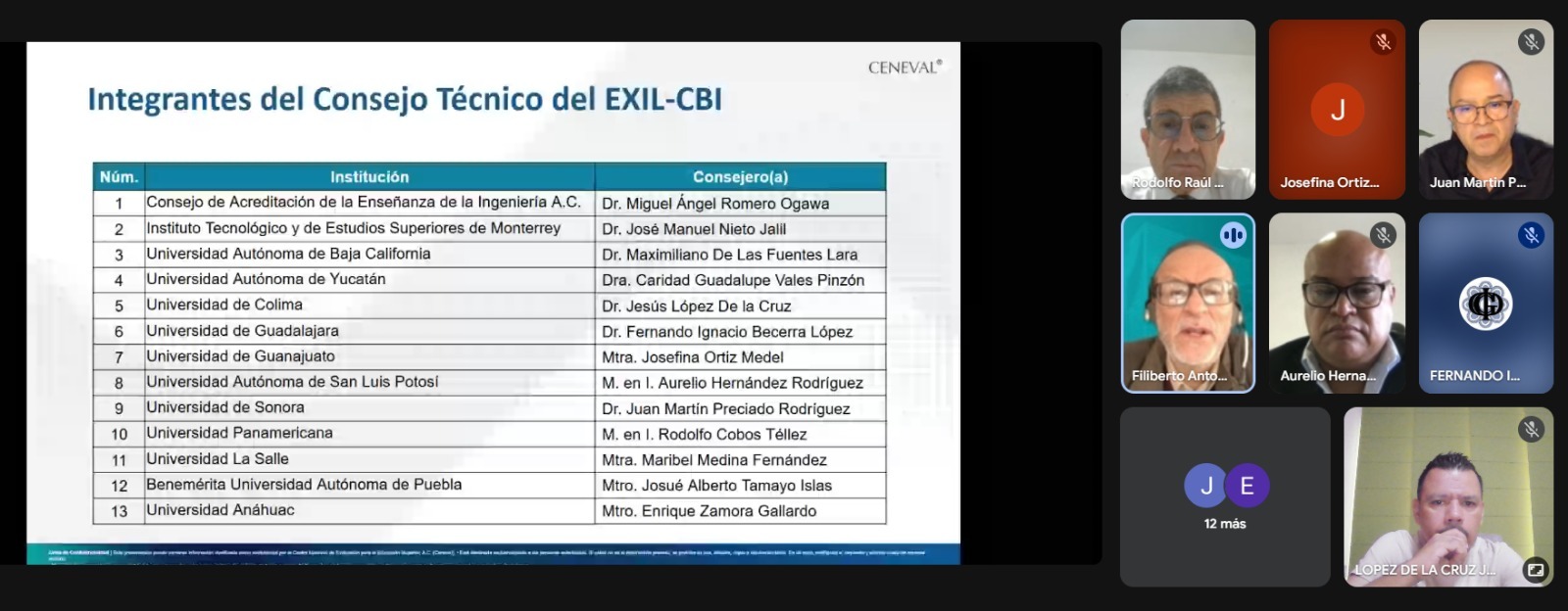 Durante la sesión, que se realizó de manera virtual, el equipo del CENEVAL presentó el esquema de trabajo para el desarrollo del EXIL-CBI, una prueba de diagnóstico nacional dirigida a estudiantes que hayan cursado al menos el 50% de su licenciatura en ingeniería. Su objetivo es evaluar el dominio en tres áreas clave de las ciencias básicas: Matemáticas, Física y Química.