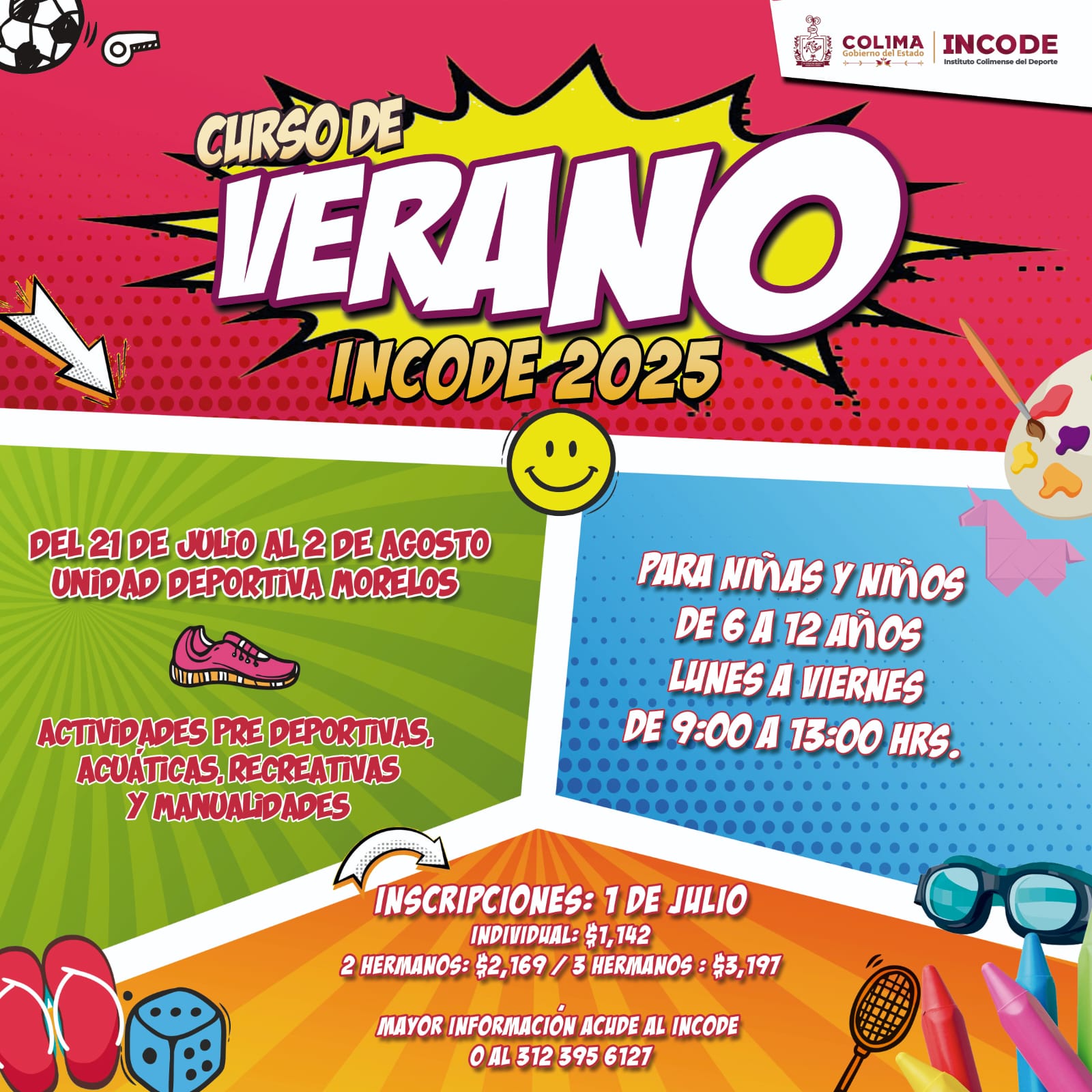 El próximo lunes será el último día para inscribirse al Curso de Verano 2025 que organiza el Instituto Colimense del Deporte (Incode) del Gobierno del Estado, por lo que invita a registrar a las infancias y juventudes en las oficinas de la dependencia gubernamental, los días jueves 17, viernes 18 y lunes 21, de 9:00 a 18:00 horas.