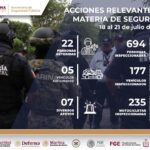 Además, las unidades policiales realizaron recorridos estratégicos en principales avenidas, colonias y zonas de convivencia, con el objetivo de mantener el orden público y garantizar la seguridad de las y los ciudadanos, durante los cuales, se inspeccionaron 694 personas, 177 vehículos y 245 motocicletas y se aseguraron 5 vehículos.