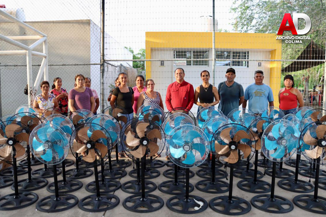 El presidente municipal de Tecomán, Armando Reyna Magaña, en compañía de su esposa Mili Cuevas Verduzco, presidenta del DIF Municipal de Tecomán, continúa con su programa personal de entrega de ventiladores a bajo costo, una iniciativa social que ha permitido apoyar a cientos de familias tecomenses en esta temporada de altas temperaturas.
