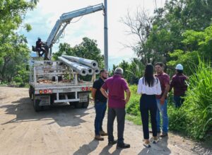 Como parte de su agenda de trabajo en las comunidades de Manzanillo, la presidenta Rosa María Bayardo Cabrera supervisó la instalación de luminarias en la localidad de La Floreña, dando respuesta a una solicitud ciudadana atendida a través de sus brigadas “Gobierno Cerca de Ti”.