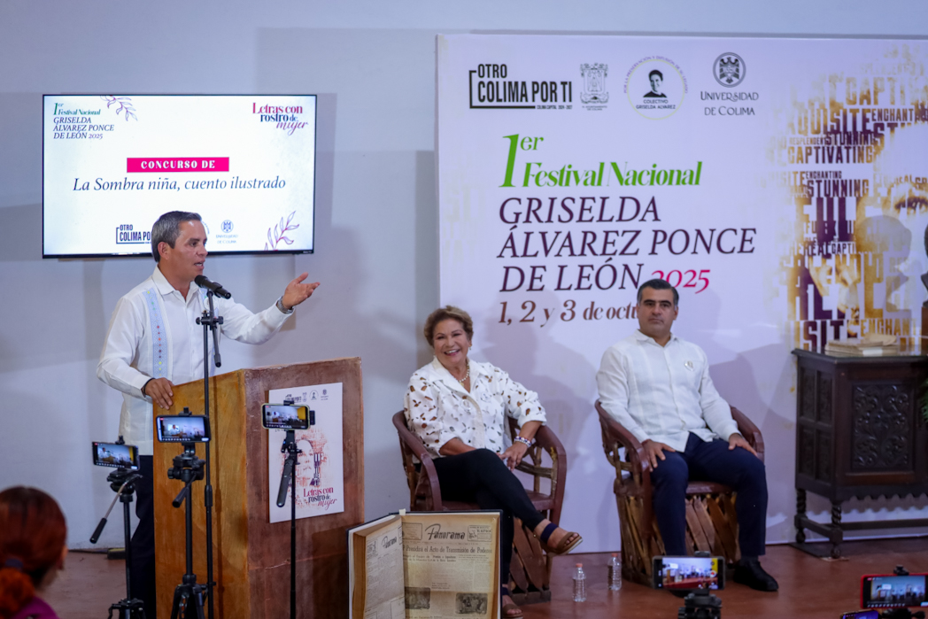 La mañana de este lunes Christian Torres Ortiz Zermeño, rector de la Universidad de Colima (UdeC), participó en la presentación del primer Festival Nacional Griselda Álvarez Ponce de León 2025, que se llevará a cabo del 1 al 03 de octubre, y que tiene como objetivo honrar la vida y obra de la maestra, escritora y primera mujer gobernadora del país: Griselda Álvarez Ponce de León.