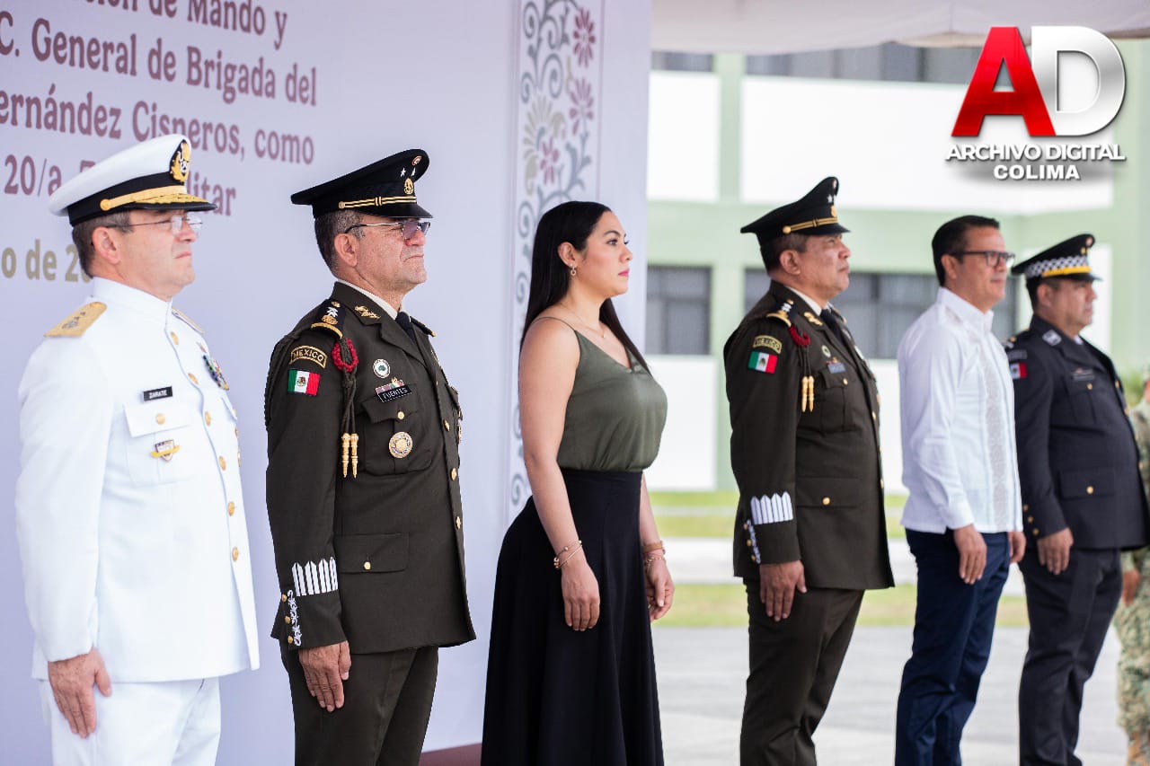 La mañana de este martes, la gobernadora del estado de Colima, Indira Vizcaíno Silva, asistió a la Ceremonia de Toma de Posesión de Mando y Protesta de Bandera del General de Brigada de Estado Mayor, Enrique Hernández Cisneros, como nuevo comandante de la Vigésima Zona Militar, en sustitución del también General Andrés Valencia Valencia.