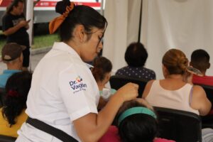 Es un proyecto de gran impacto social que brinda atención médica integral gratuita a las comunidades, sin necesidad de presentar ningún documento especial. Se entregan 500 fichas diarias y se atiende de 6:00 de la mañana a 5:00 de la tarde, brindando consultas generales y especializadas, estudios de laboratorio, exámenes clínicos y acciones preventivas en salud.