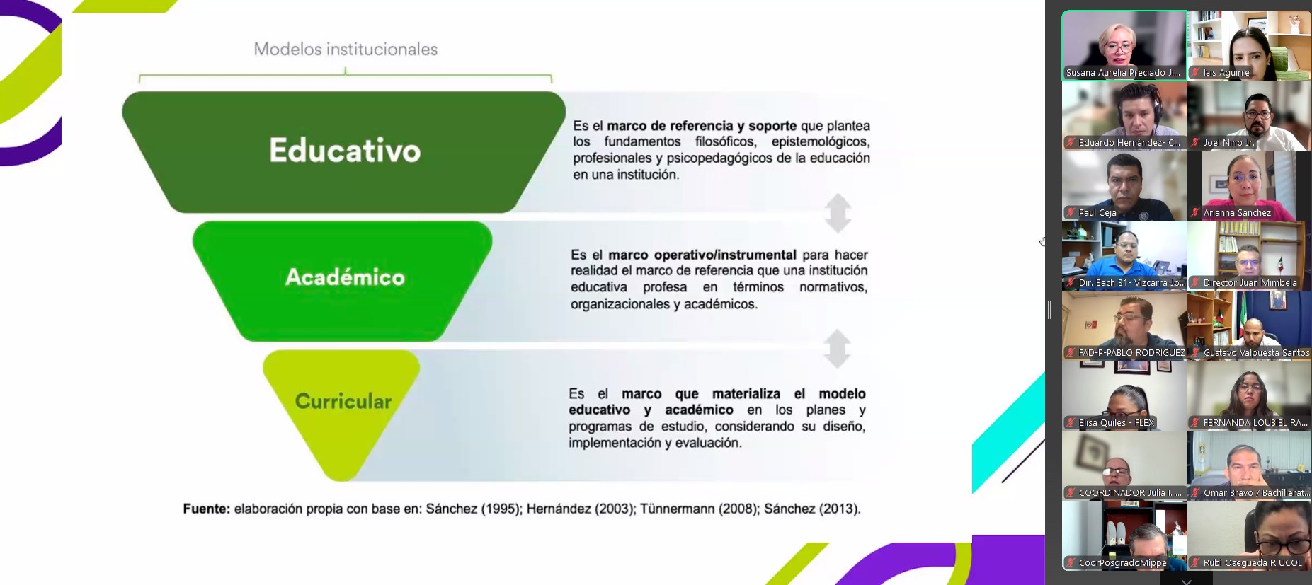 El modelo educativo, comentó, es el marco de referencia que establece los fundamentos filosóficos, epistemológicos, profesionales y psicopedagógicos de la educación en una institución. Dentro de este modelo, destacó la presencia de dos componentes clave: el modelo académico en sí y el modelo curricular.