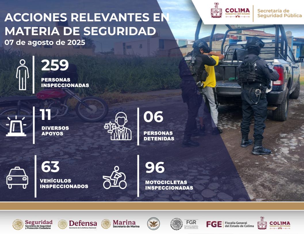 El Gobierno del Estado de Colima, a través de la SSP y la PEP, refrenda su compromiso de trabajar día y noche con responsabilidad, firmeza y coordinación interinstitucional para proteger a la población colimense.