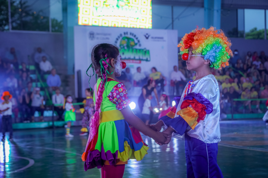 Con el tema “Loro Circus”, más de 500 niños y niñas, acompañados por sus familias, dieron cierre a las actividades del curso “Loromanía: Una aventura de verano 2025”, con una noche llena de música y bailes, este viernes en el Polideportivo Central de la Universidad de Colima. El evento estuvo encabezado por el rector de la institución, Christian Jorge Torres Ortiz Zermeño, y su esposa, Blanca Liliana Díaz Vázquez, presidenta del Voluntariado.