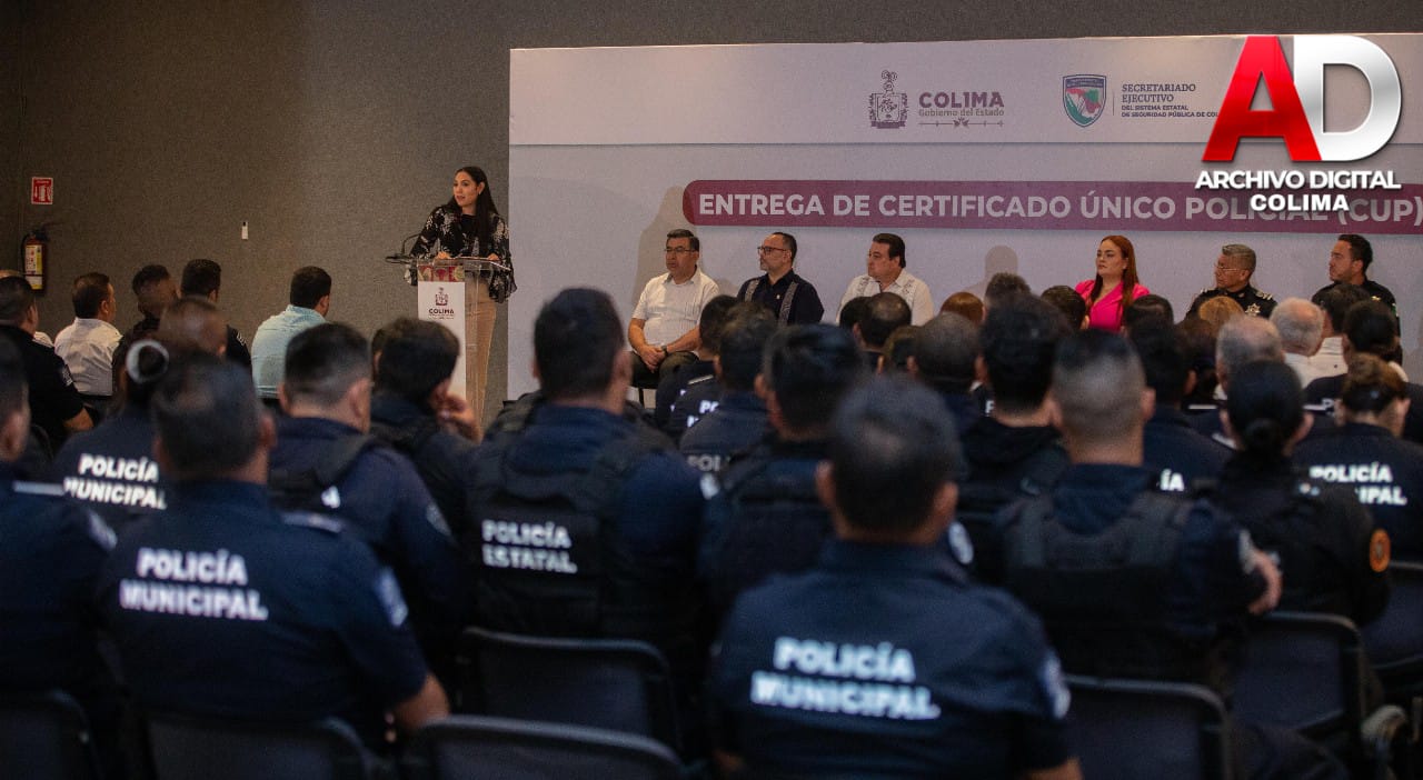 Este jueves, la gobernadora de Colima, Indira Vizcaíno Silva entregó el Certificado Único Policial (CUP) a 641 elementos de corporaciones estatales y municipales, encargadas de la seguridad en la entidad. La mandataria explicó que lo recibieron 360 agentes estatales y 281 activos de las policiales municipales preventivas, de los cuales 113 corresponden a nuevos ingresos y 528 a personal recertificado.