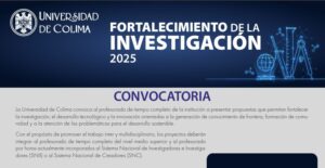 La Coordinación General de Investigación de la Universidad de Colima dio a conocer los resultados de la convocatoria Fortalecimiento de la Investigación 2025, iniciativa que busca impulsar el desarrollo científico, tecnológico y de innovación, así como fomentar el trabajo inter y multidisciplinario en la casa de estudios. Este año fueron aprobados 10 proyectos que recibirán financiamiento.