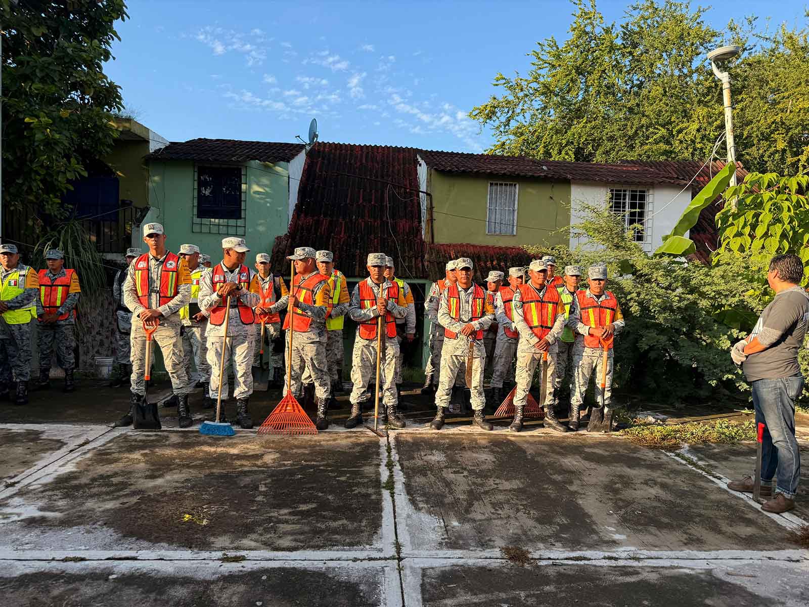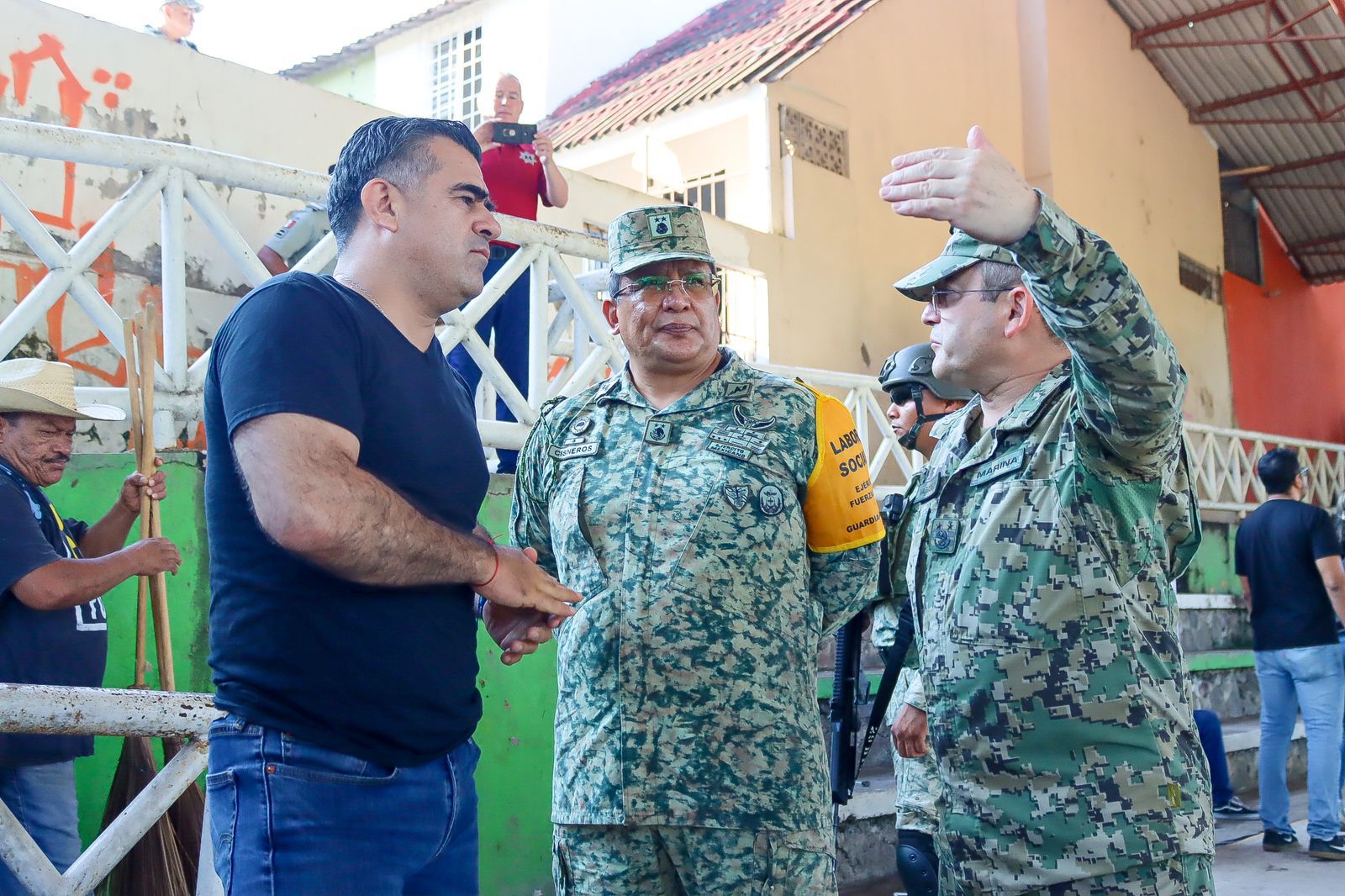 + Con el respaldo de la Secretaría de Marina, la Defensa Nacional, la Guardia Nacional y la Secretaría de Seguridad Pública estatal, se realizó una macro brigada de limpieza, servicios públicos y actividades comunitarias en El Mezcalito, con el objetivo de recuperar espacios públicos y fortalecer la convivencia ciudadana.