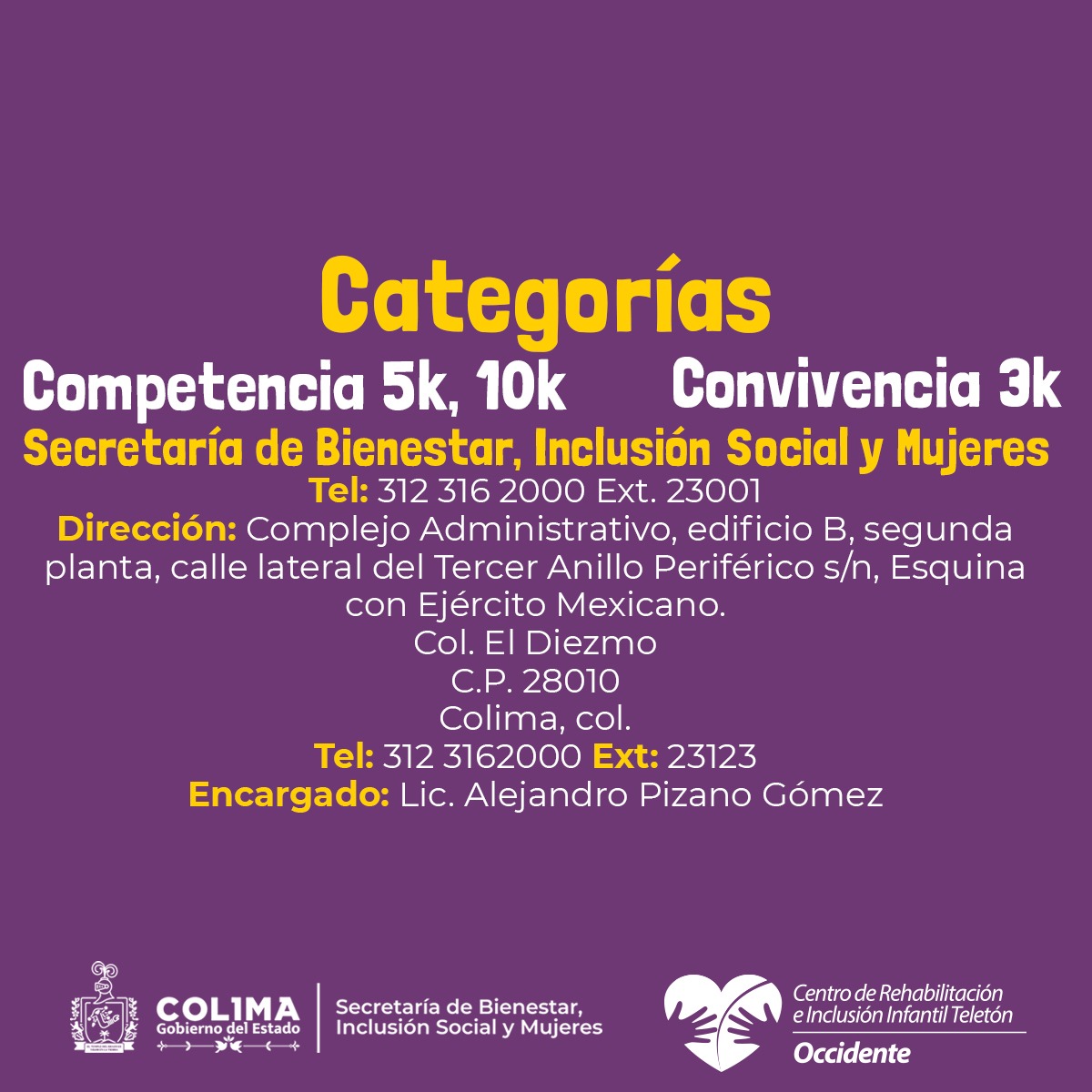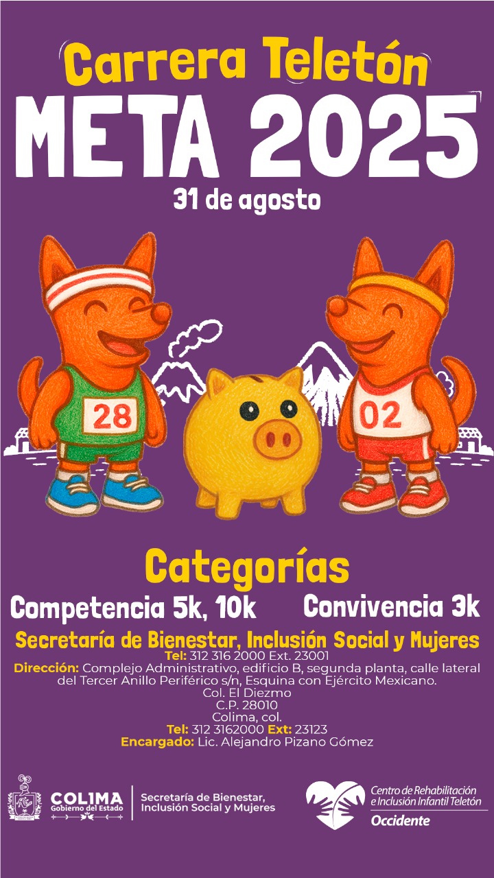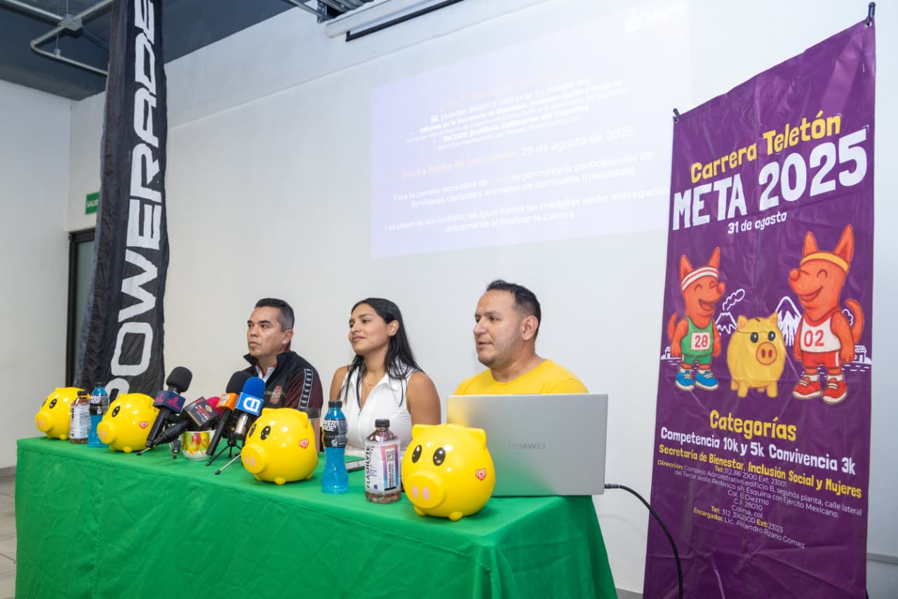 El Gobierno del Estado de Colima, a través de la Secretaría de Bienestar, Inclusión Social y Mujeres (Sebiinsom) y el Instituto Colimense del Deporte (Incode), presentó los pormenores de la carrera ‘Meta Teletón 2025’, recorrido, horarios y entrega de kits para cada participante, evento que tiene el objetivo de contribuir a alcanzar la meta que permita la construcción de un Centro de Rehabilitación e Inclusión Infantil (CRIT) en nuestra entidad.