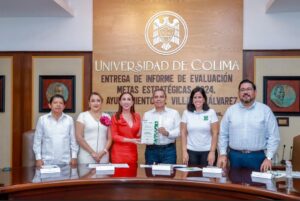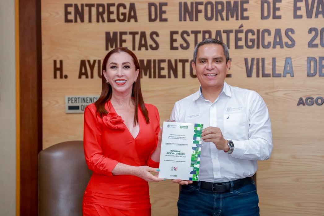 Este martes, en la Sala de Juntas de Rectoría, Christian Jorge Torres Ortiz Zermeño, rector de la Universidad de Colima, entregó a la alcaldesa Esther Tey Gutiérrez el informe de evaluación correspondiente a las 253 metas estratégicas planteadas por el gobierno de Villa de Álvarez en 2024. Dicho documento fue revisado de manera rigurosa por el comité evaluador, integrado por egresadas y egresados de esta casa de estudios. El análisis concluye que el 97 por ciento de las metas fueron cumplidas satisfactoriamente.