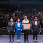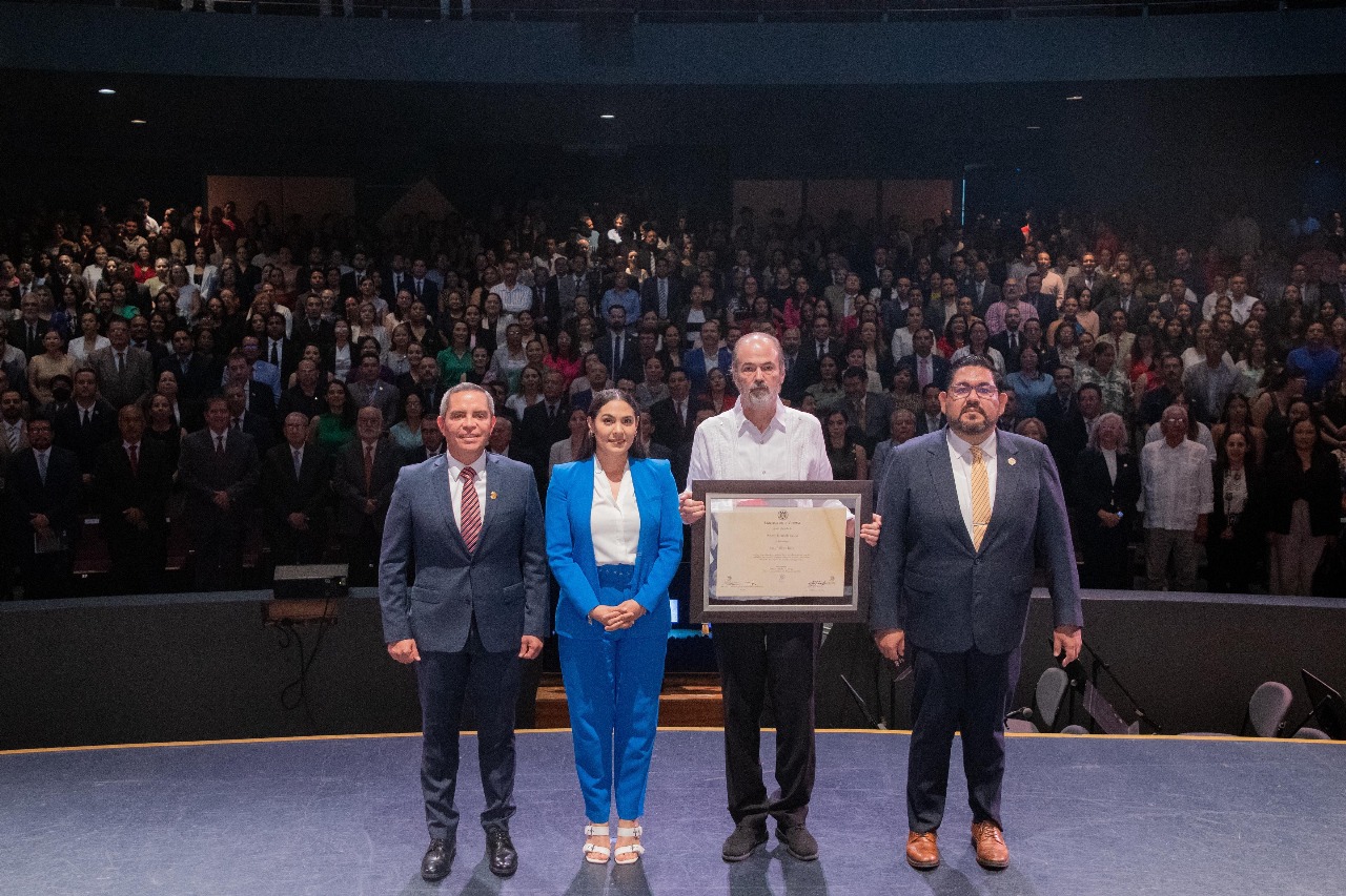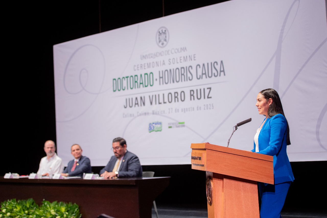 La gobernadora Indira Vizcaíno Silva acudió este miércoles como invitada de honor por la Universidad de Colima a la entrega del Doctorado Honoris Causa al escritor Juan Villoro Ruiz, ceremonia efectuada en el Teatro Universitario ‘Coronel Pedro Torres Ortiz’; ahí, en presencia del rector Christian Jorge Torres Ortiz Zermeño, la mandataria estatal indicó que en términos políticos se tienen muchas coincidencias con el literato.