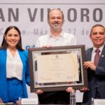 La titular del Poder Ejecutivo estatal felicitó a Juan Villoro por este doctorado que reconoce su trayectoria; “sé que los escritores escriben por una necesidad ineludible de expresar, de sacar ideas de su cerebro y emociones de su pecho, y que esa es una necesidad muy personal; pero su escritura, estimado Juan, presta un gran servicio a nuestra sociedad. Así que ojalá que este reconocimiento influya en que usted continúe con esta vocación que tan bien desempeña”.