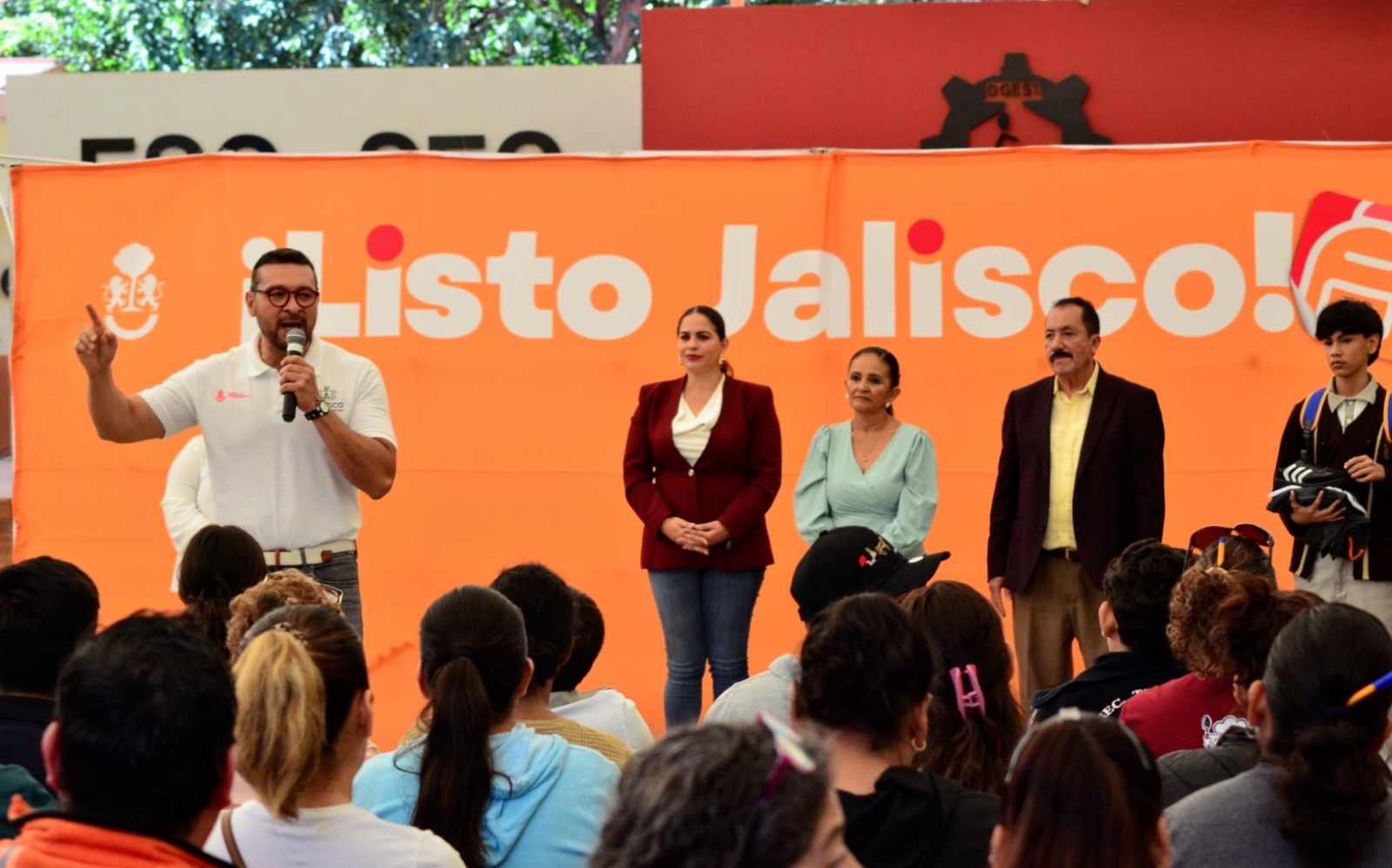 El presídium estuvo integrado por, Magali Casillas Contreras, presidenta municipal de Zapotlán el Grande; Albino Galván Martínez, subsecretario de Gestión Integral de Programas y Redes Sociales del Estado de Jalisco; Marisol Mendoza Pinto, regidora presidenta de la Comisión Edilicia de Educación; Alma Yadira Figueroa Coronel, directora general de Construcción de Comunidad; Mario López Contreras, director de la Escuela Secundaria Técnica No. 100 y Miguel Ángel Beltrán Méndez, alumno.