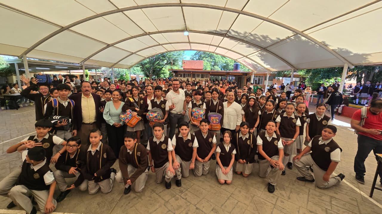 Cinco alumnos de la Escuela Secundaria No. 100 recibieron de manera simbólica los paquetes escolares; el alumno Miguel Ángel Beltrán Méndez, dirigió unas palabras en representación de las y los alumnos beneficiados, agradeciendo que a través de este apoyo puedan garantizar la continuidad de sus estudios y disminuir los gastos a sus padres.