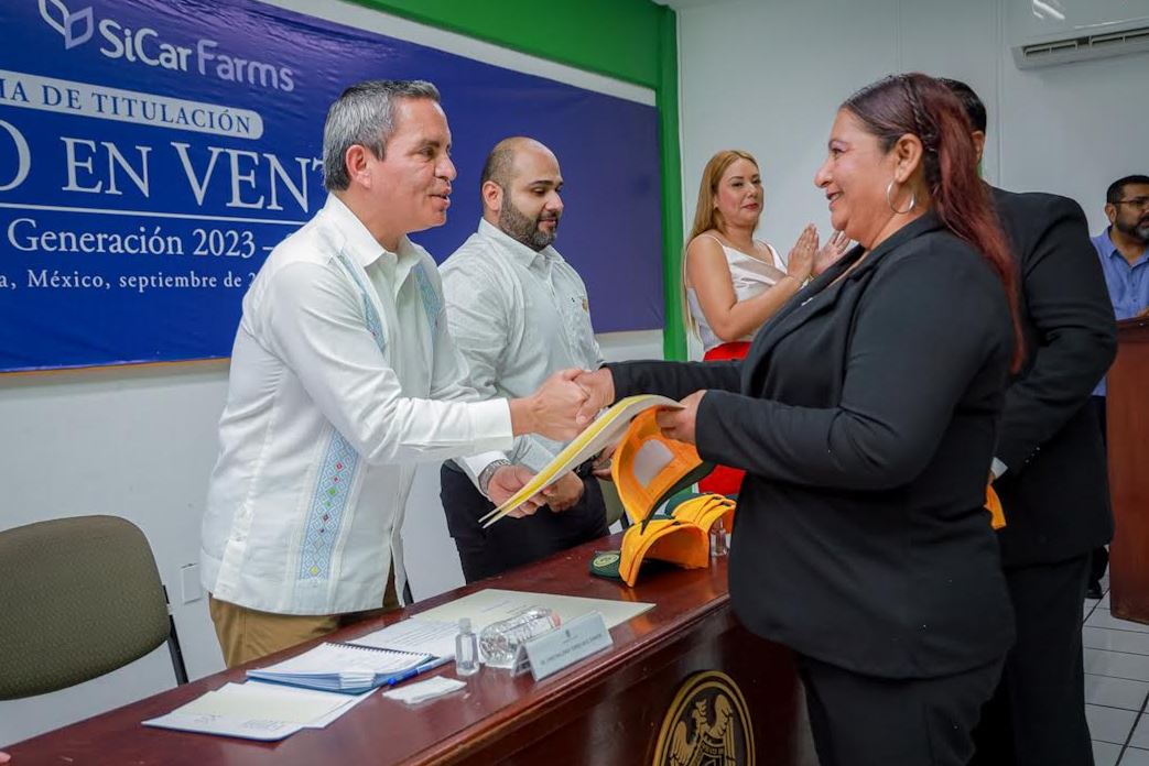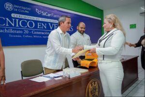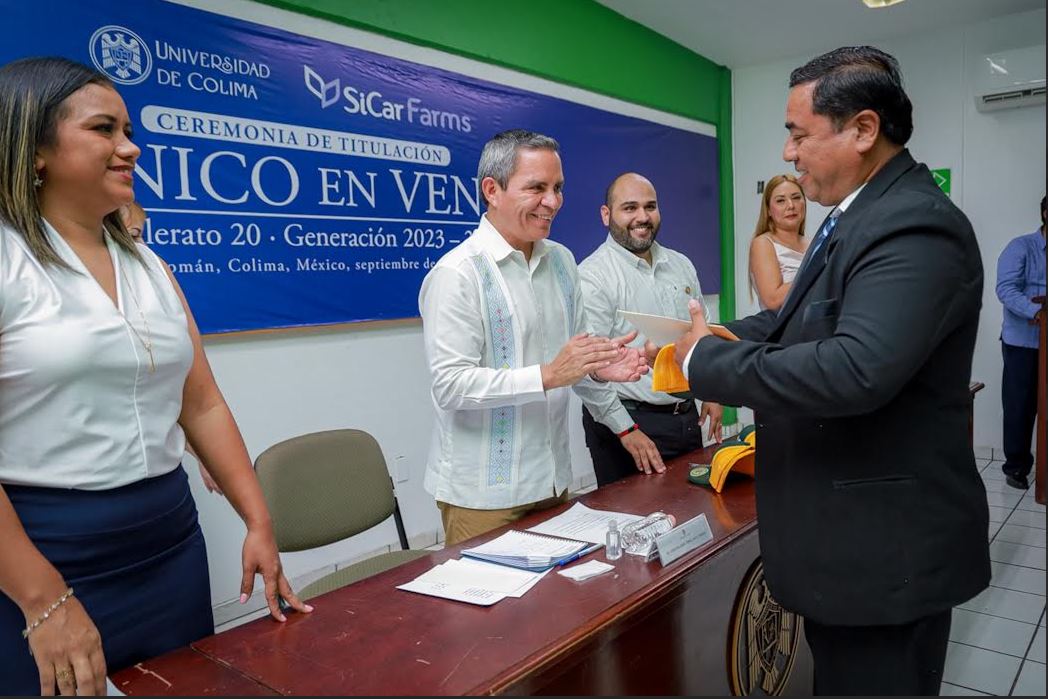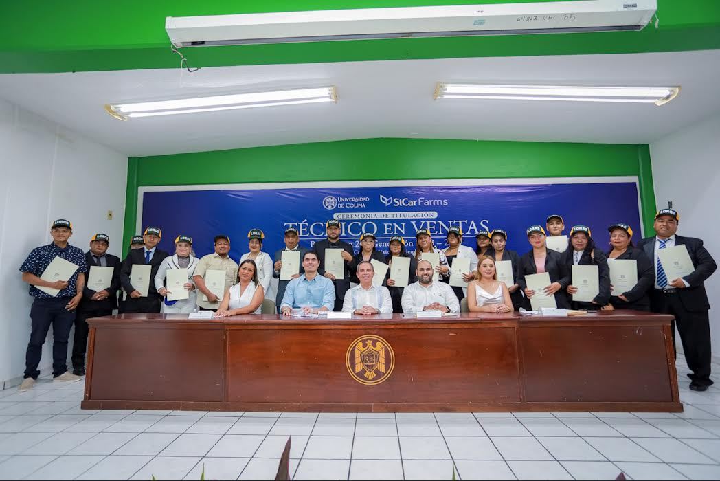 Como parte de un esfuerzo conjunto entre la Universidad de Colima (UdeC) y la empresa Sicar Farms, este lunes por la mañana se realizó la ceremonia de titulación de la primera generación del programa de Técnico en Ventas, egresados del Bachillerato 20 del campus Tecomán, con un total de 20 estudiantes titulados.