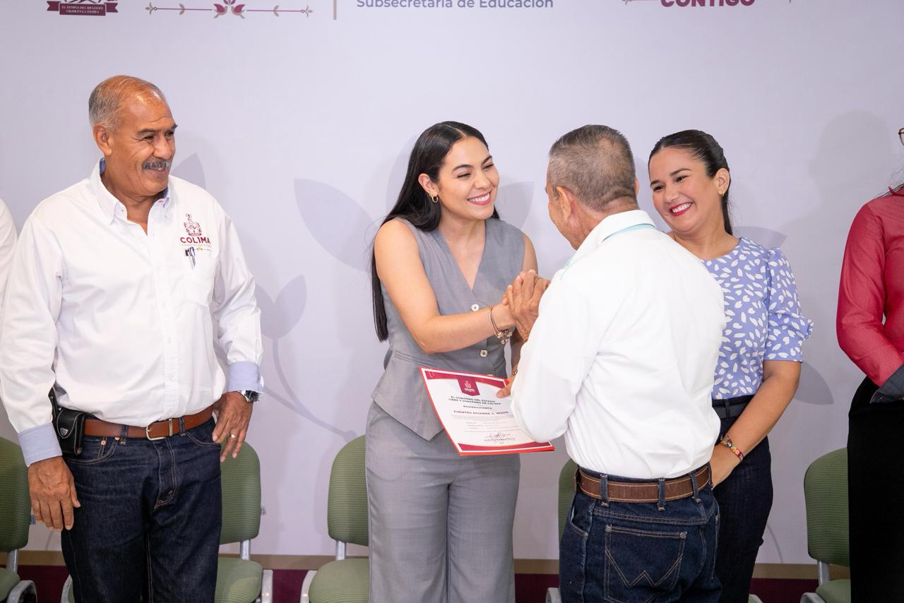 También reconoció y agradeció a David Hernández Viera, secretario general de la Sección 39 del Sindicato Nacional de Trabajadores de la Educación (SNTE), por aceptar que estas bases se entreguen estrictamente en función de la antigüedad del personal, respetando sus derechos, y adelantó que así se mantendrán en futuras entregas para darles certeza laboral a quienes aún no la reciben.