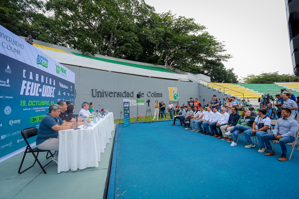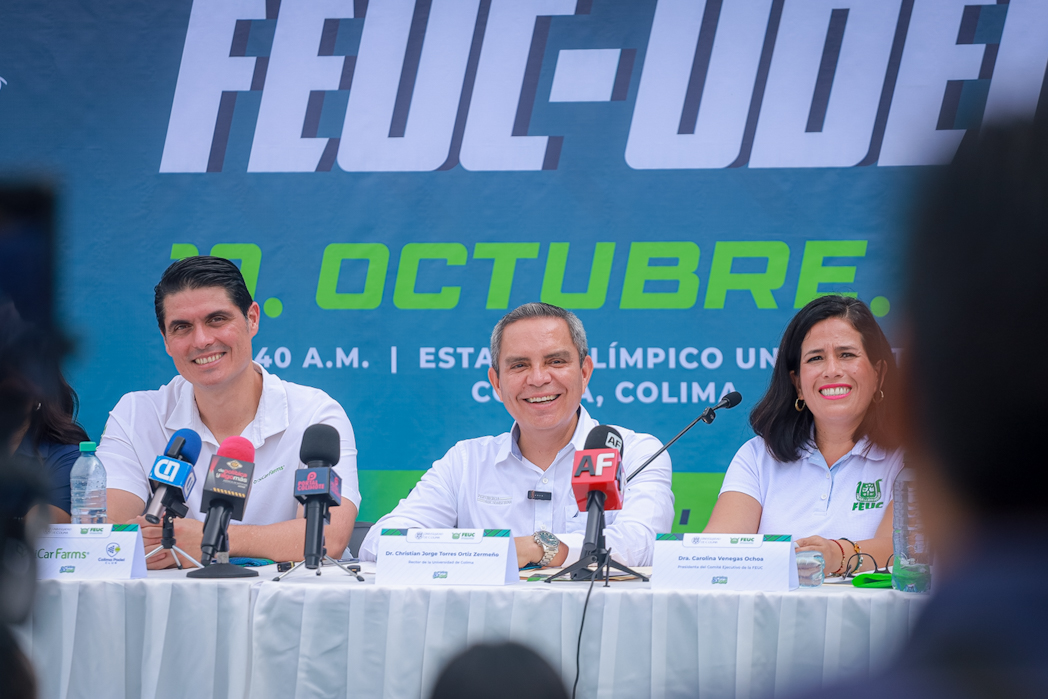 Este martes, desde la pista de atletismo del Estadio Olímpico Universitario, se anunció en rueda de prensa la onceava edición de la carrera FEUC-UdeC “En unidad por el egreso”, que se llevará a cabo el próximo 19 de octubre como parte de las celebraciones por el 85 aniversario de la Universidad de Colima. El anuncio fue encabezado por el rector de la UdeC, Christian Torres Ortiz Zermeño, y por la presidenta de la Federación de Egresados (FEUC), Carolina Venegas Ochoa.