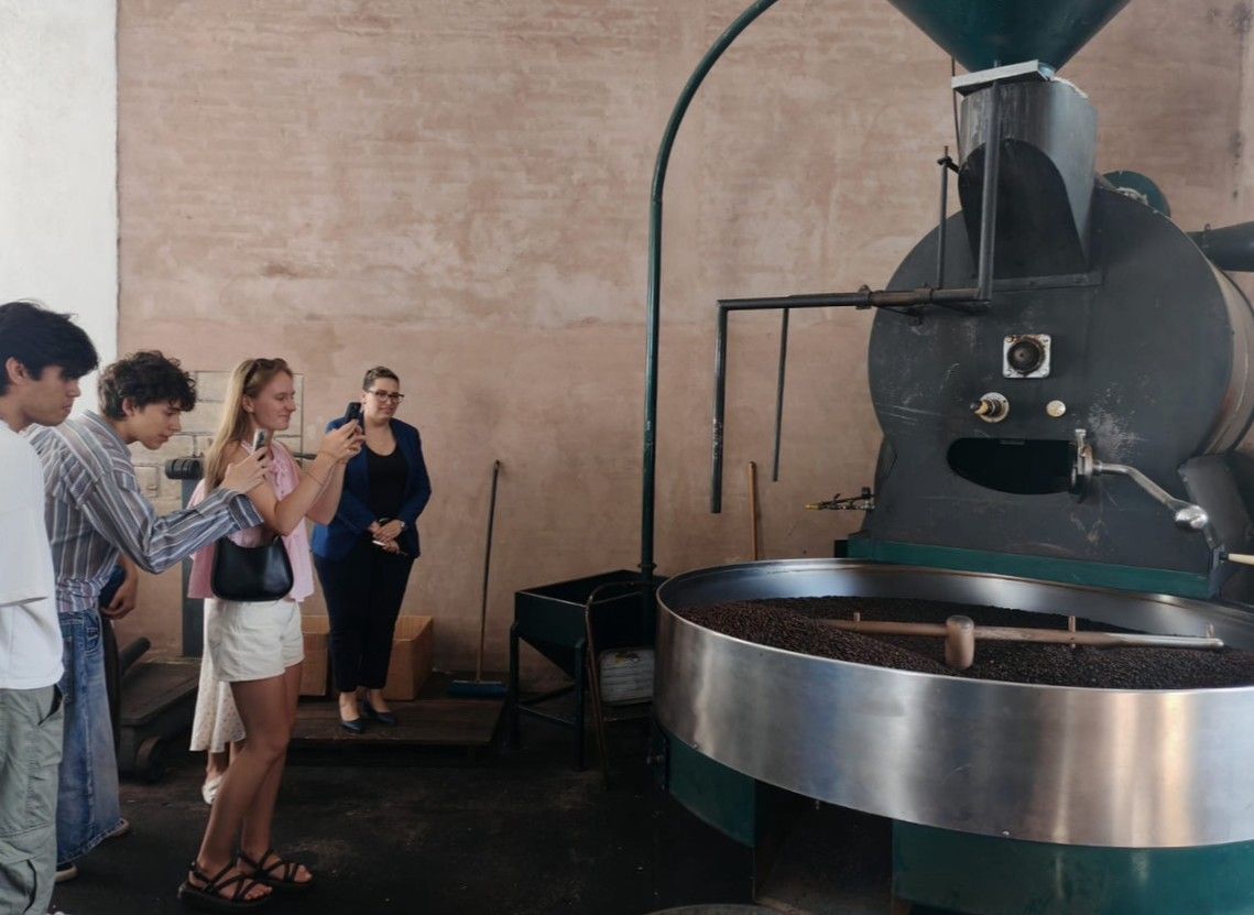El recorrido continuó con visitas a empresas locales emblemáticas como “Productos Lácteos Don David”, donde aprendieron sobre el proceso artesanal de elaboración de quesos; “Ponche Don Tavo”, donde su fundador explicó la historia del negocio y ofreció una degustación de ponches de sabores como macadamia, café, cacahuate y maracuyá; así como “Café Comalteco”, donde conocieron el ciclo de producción del café, desde el grano hasta la taza.