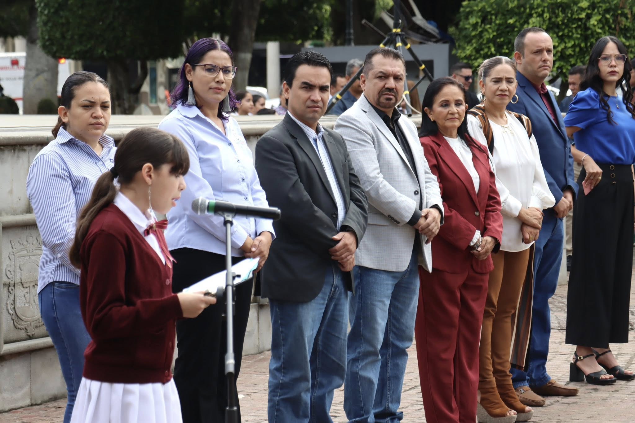 En representación de la presidenta municipal, Magali Casillas Contreras, la regidora Marisol Mendoza Pinto presidió la ceremonia, acompañada por miembros del Ayuntamiento, autoridades educativas y estudiantes de distintos niveles escolares; escuelas, secundarias, bachilleratos y preparatoria.