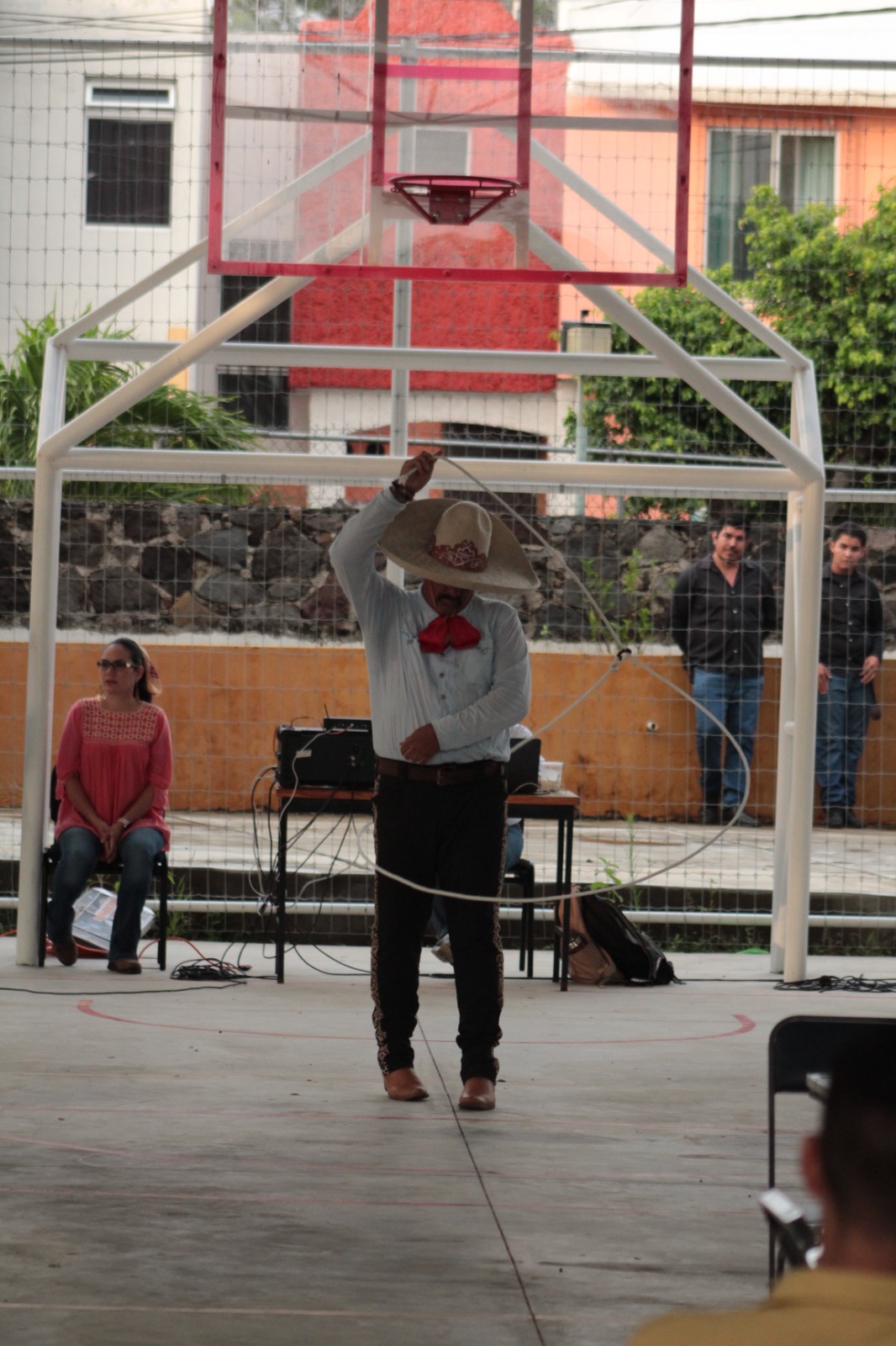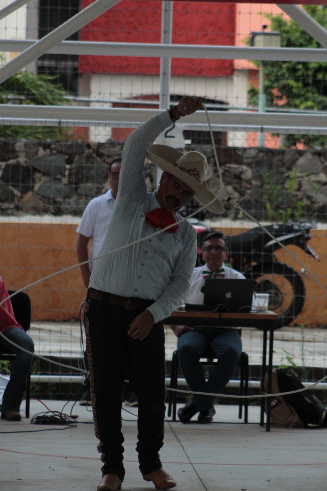 En esta alegre velada, los asistentes disfrutaron de una gran variedad de antojitos mexicanos, aguas frescas, y un escenario que recibió el talento de las y los estudiantes de Intervención Educativa del turno vespertino, Fany Navarrete y Omar Suárez, del tercer semestre, quienes presentaron la estampa “Jarabe tapatío”; así como una muestra de floreo de reata a cargo del charro José Daniel Gorrocino García, quién enalteció nuestras tradiciones y expresiones culturales. Como parte del programa, el Dr. Héctor Porfirio Ochoa, compartió la lectura de la “Contextualización sobre la lucha de independencia de México”, así como la muestra “Las mujeres de nuestra independencia” a cargo de la Maestra Zaida Bustos Eusebi.