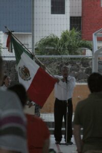 Posterior al protocolo, la comunidad reunida, en esta ocasión en los espacios de la cancha deportiva, se unieron al patriótico y tradicional grito de independencia ¡𝑽𝒊𝒗𝒂 𝑴é𝒙𝒊𝒄𝒐!, encabezado por el Dr. Armando Aguilera, director de nuestra casa de estudios.